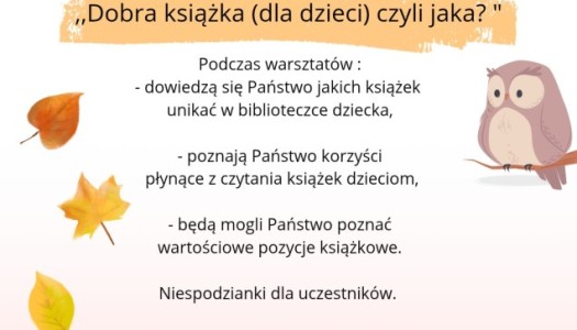 Drodzy Rodzice, serdecznie zapraszamy na warsztaty dla Państwa pt.„Dobra książka (dla dzieci) – czyli jaka?” Podczas spotkania: dowie...
