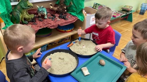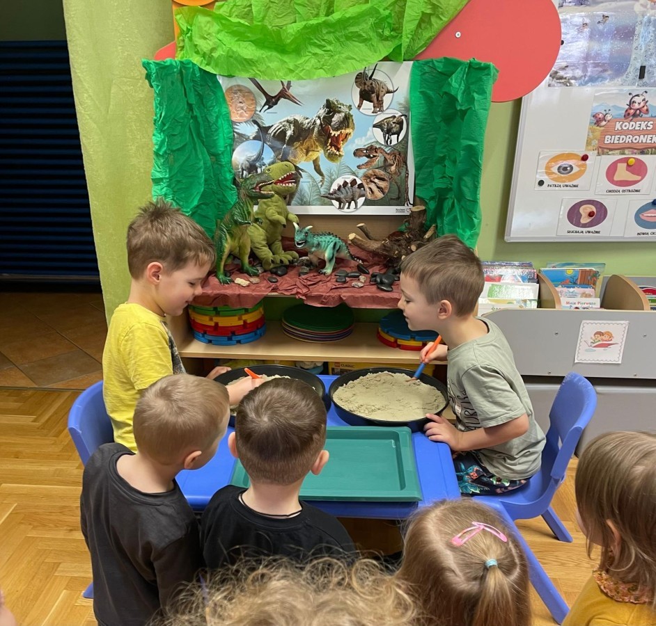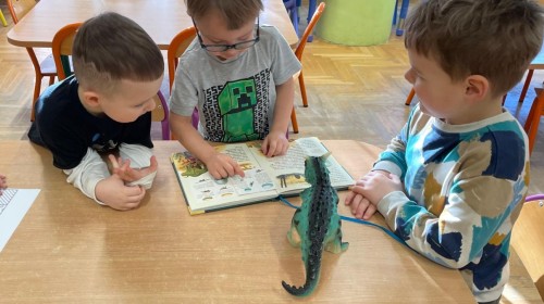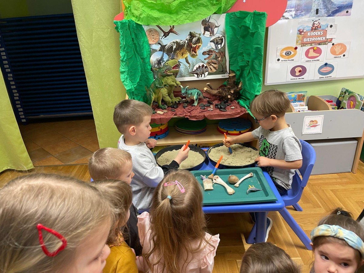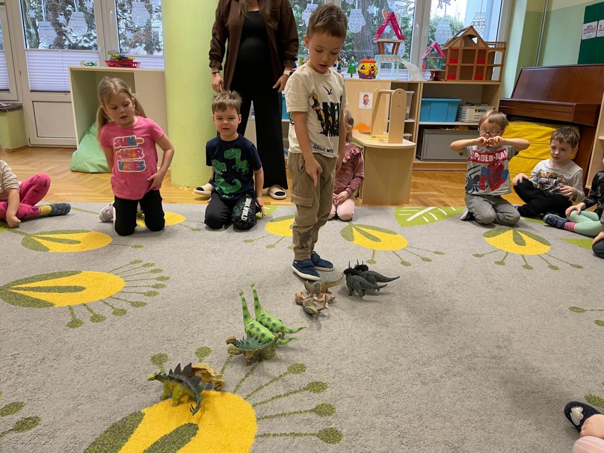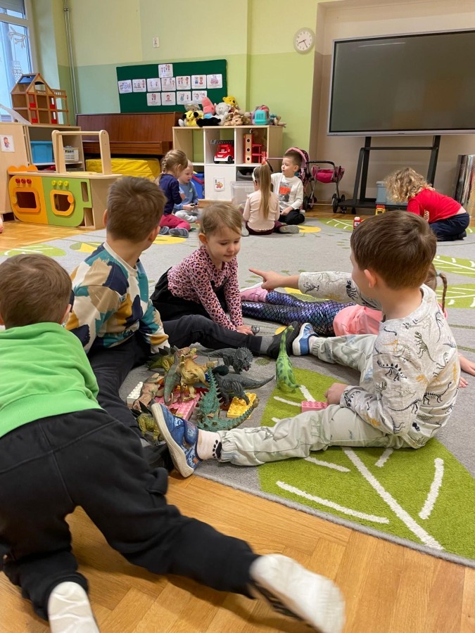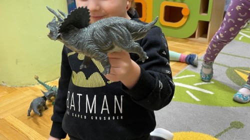 26 lutego obchodziliśmy Dzień Dinozaura. Z tej okazji Grupa Biedronek poznawała tajniki prehistorii. Przez cały tydzień było wiele zabaw edukacyjnych, plastycznych, ruchowych i muzycznych. Poznawaliśmy gatunki Dinozaurów, klasyfikowaliśmy je i przeliczaliśmy. Naśladowaliśmy je ruchem. Bawiliśmy się w paleontologów. Układaliśmy puzzle z Dinozaurami, graliśmy w Dino memory, malowaliśmy farbami i rysowaliśmy je. Oglądaliśmy książki o Dinozaurach.