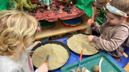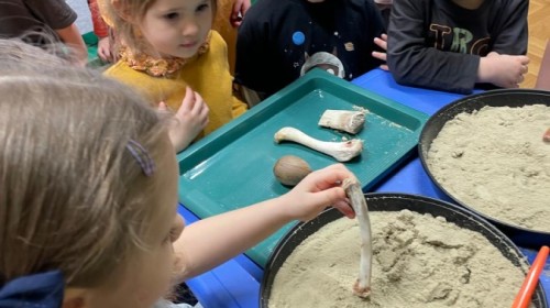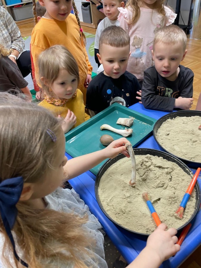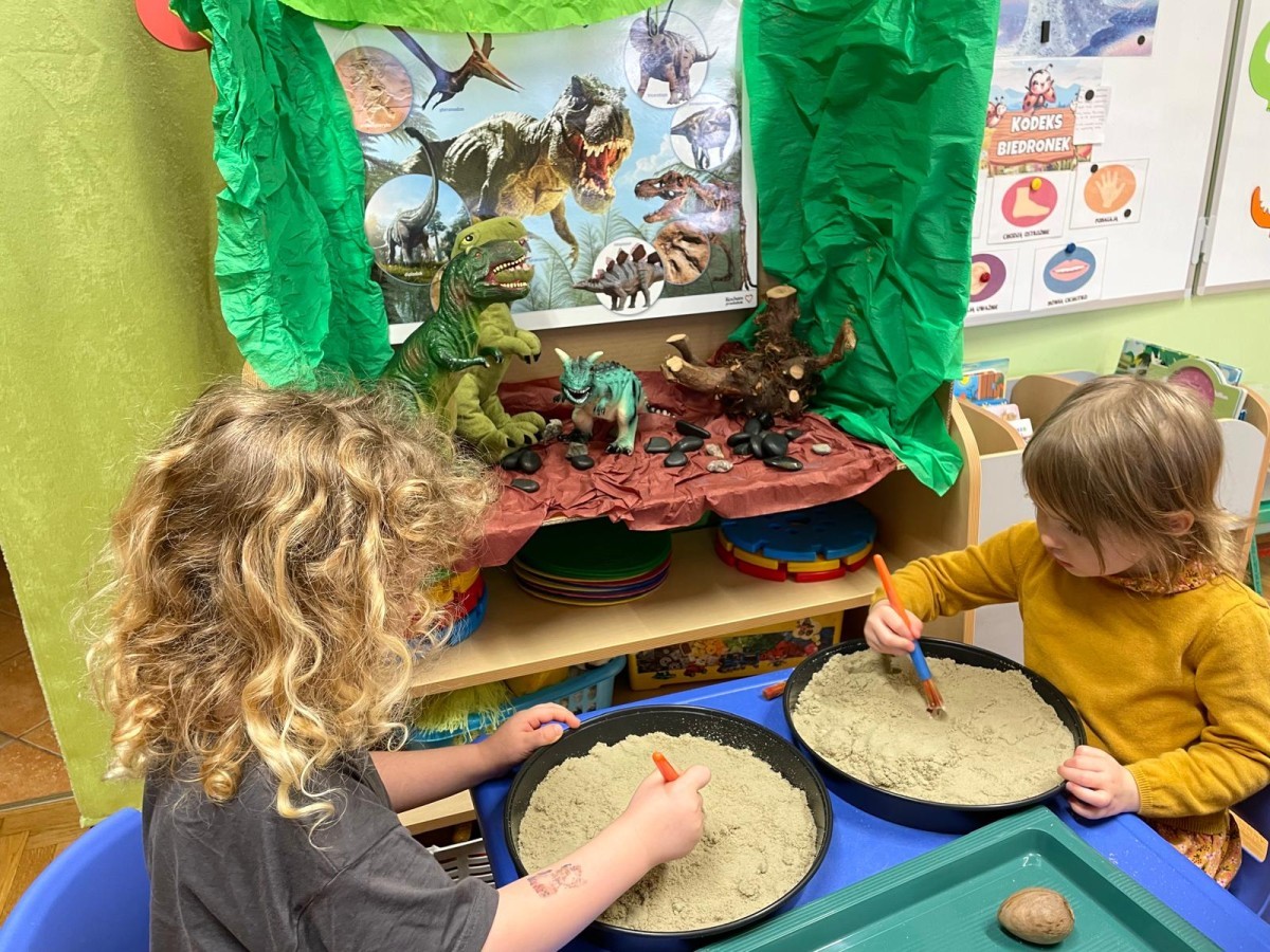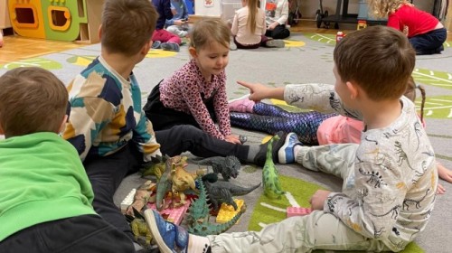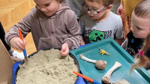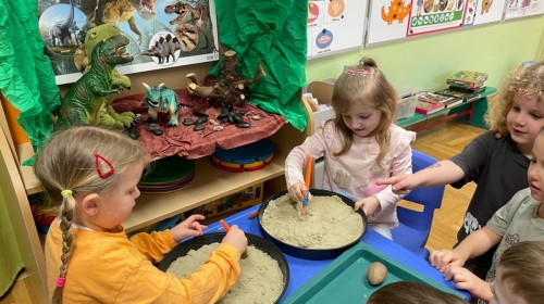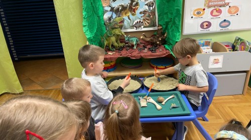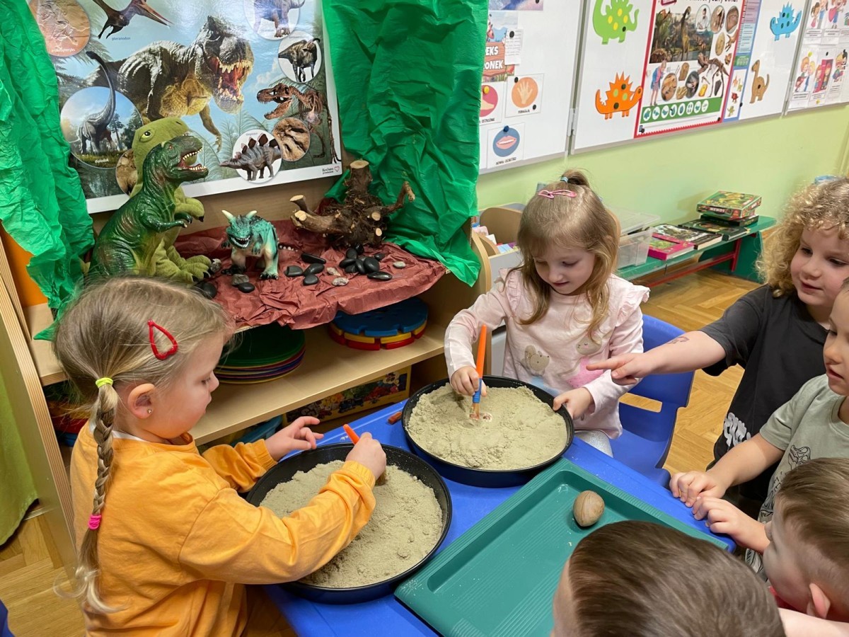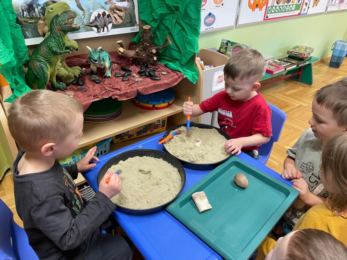 26 lutego obchodziliśmy Dzień Dinozaura. Z tej okazji Grupa Biedronek poznawała tajniki prehistorii. Przez cały tydzień było wiele zabaw edukacyjnych, plastycznych, ruchowych i muzycznych. Poznawaliśmy gatunki Dinozaurów, klasyfikowaliśmy je i przeliczaliśmy. Naśladowaliśmy je ruchem. Bawiliśmy się w paleontologów. Układaliśmy puzzle z Dinozaurami, graliśmy w Dino memory, malowaliśmy farbami i rysowaliśmy je. Oglądaliśmy książki o Dinozaurach.