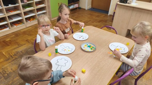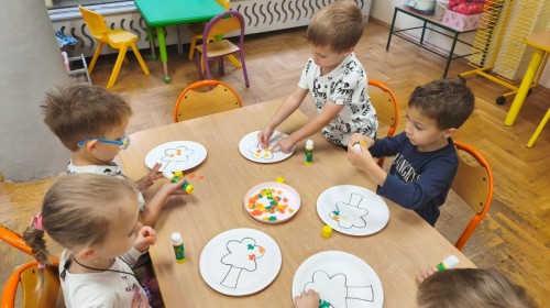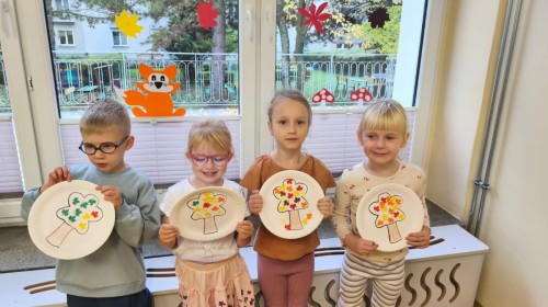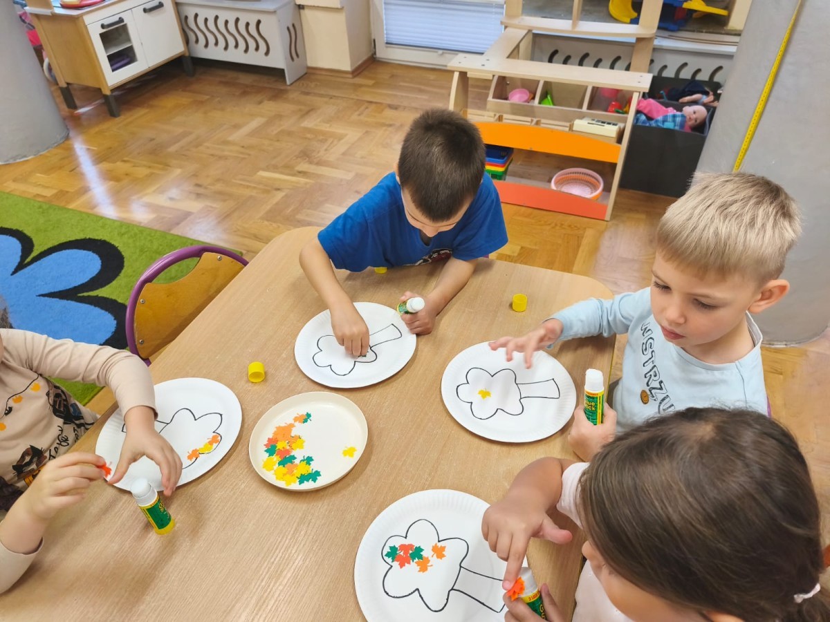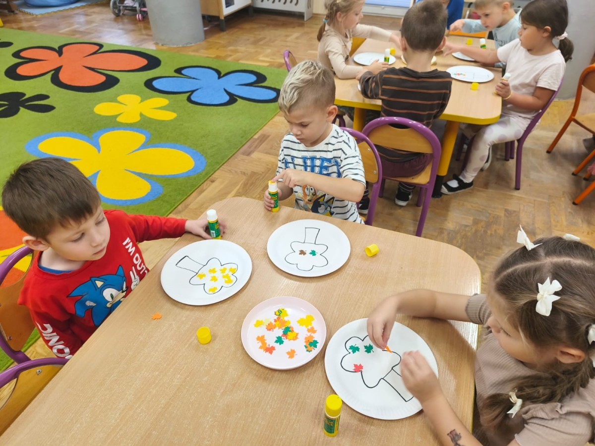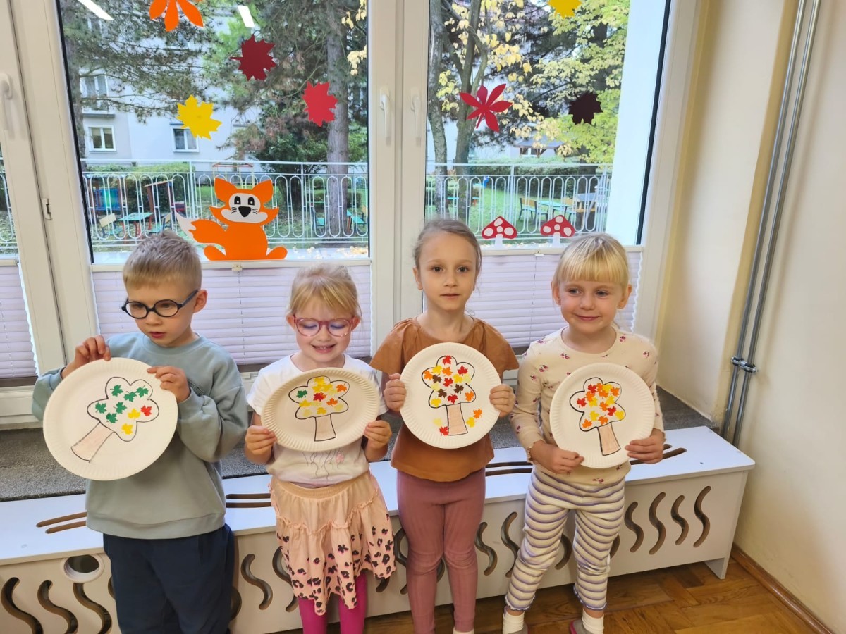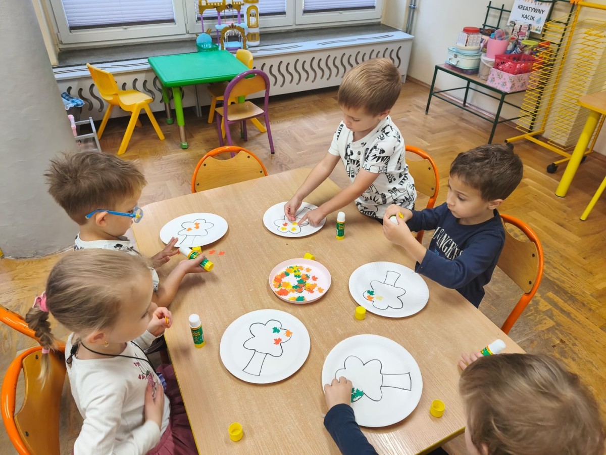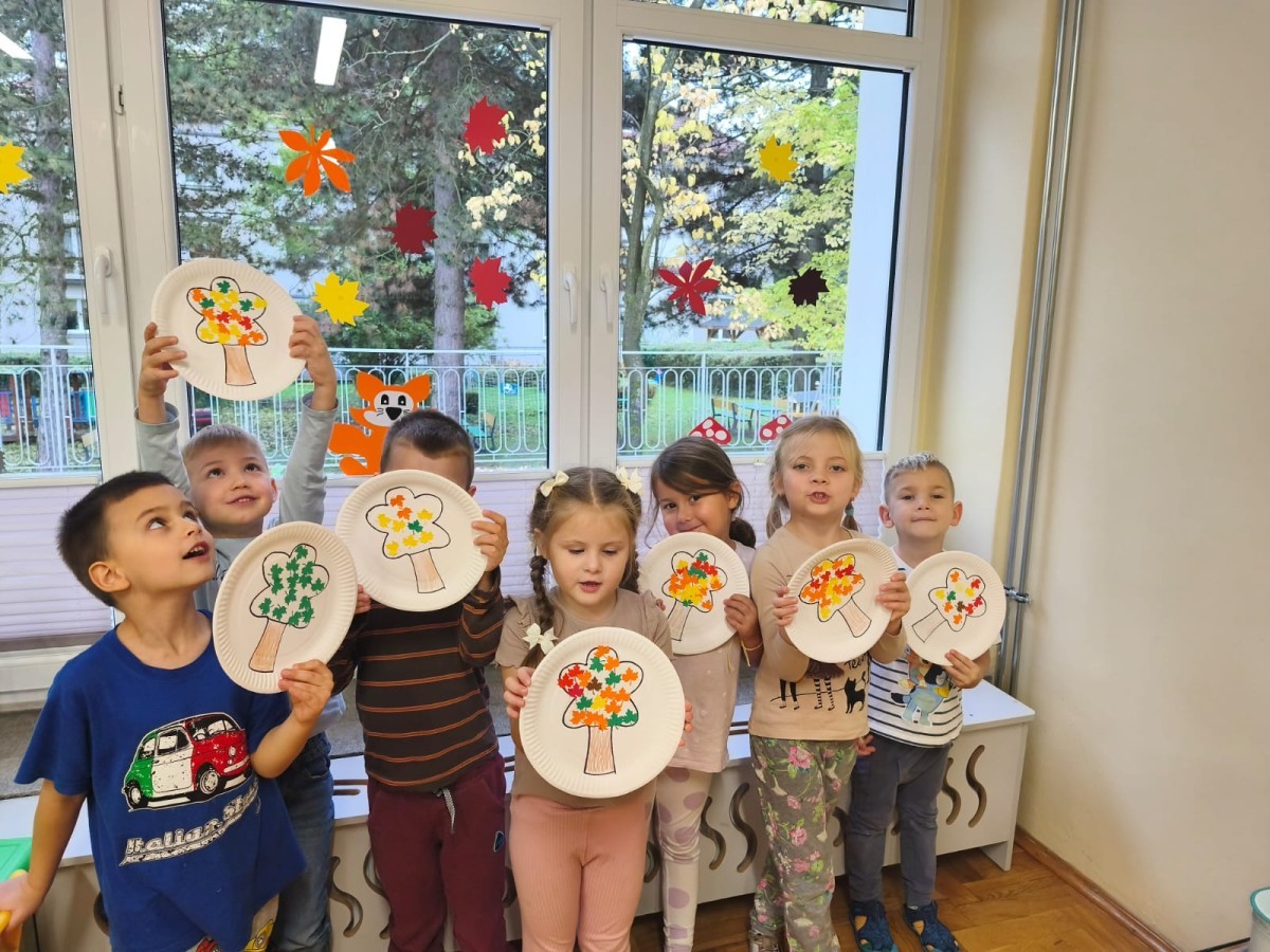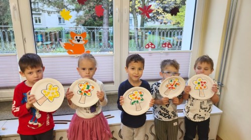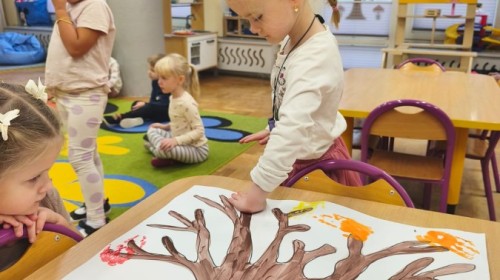 10 października obchodzimy Dzień drzewa, z tej okazji Kropelki poznały ciekawostki dotyczące drzew, przypomniały sobie ich najpopularniejsze odmiany, wykonały grupowe drzewko oraz pracę plastyczną. Niestety pogoda nie sprzyjała spacerom, dlatego piękne drzewa rosnące w naszym ogrodzie przedszkolnym, tym razem podziwialiśmy jedynie przez okna.