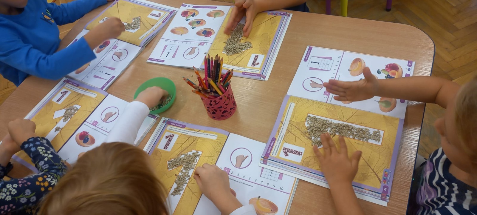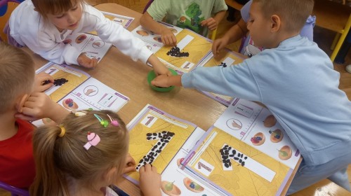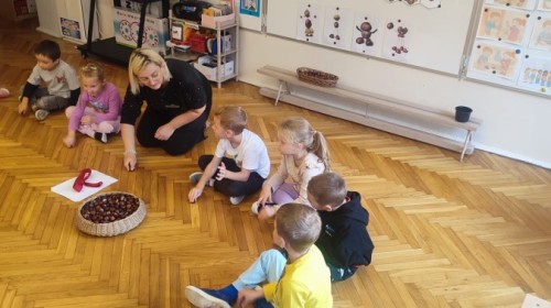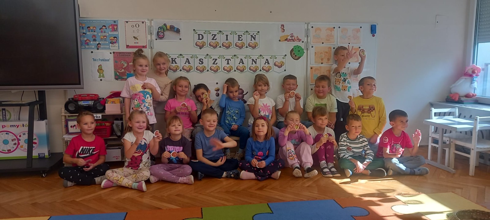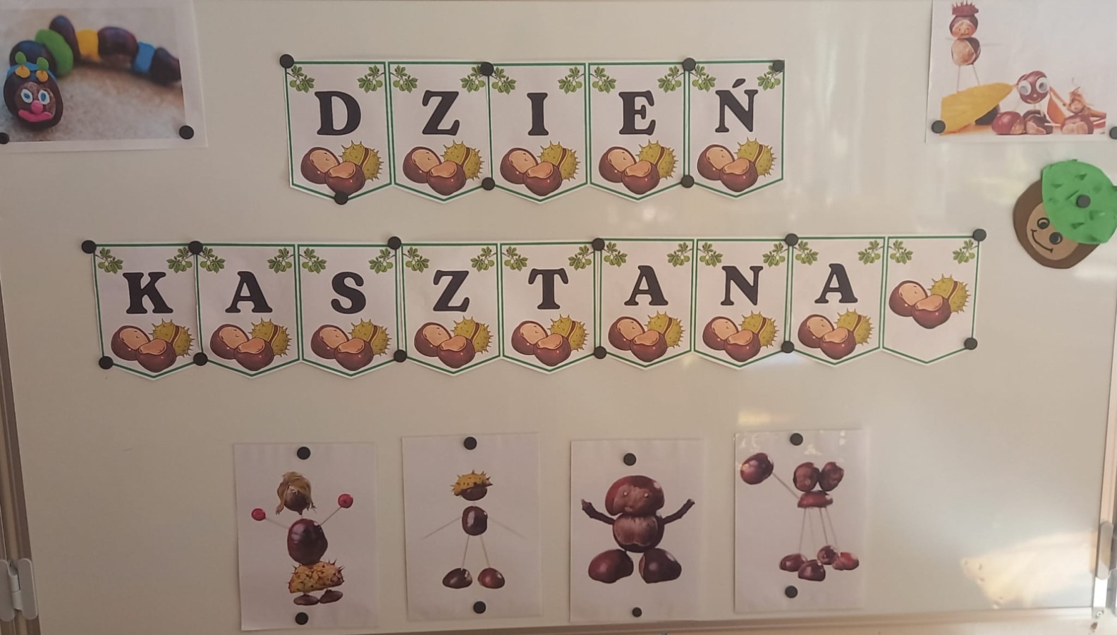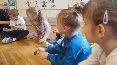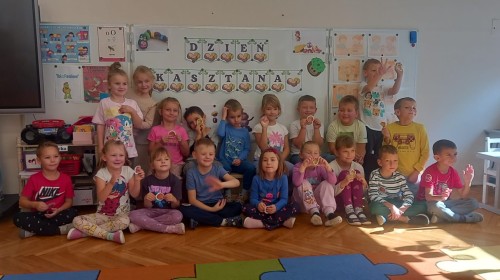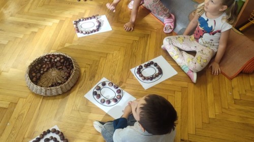 Wystukiwanie rytmu piosenki🎶 z wykorzystaniem kasztanów, "znajdź kasztana" - zajęcia ruchowe👣, "Przekaż dalej" - zajęcia w kole z kasztanami🤝, "O jak..." - układanie litery "o" z kasztanów, "mój kasztan" - zajęcia plastyczno-techniczne✂️🖌, "Kasztanki" - praca w zespołach, tworzenie napisu grupowego, odwzorowywanie liter🗒, "w poszukiwaniu kasztanów" - zajęcia na świeżym powietrzu :)🌰🌰🌰... działo się😁👐
