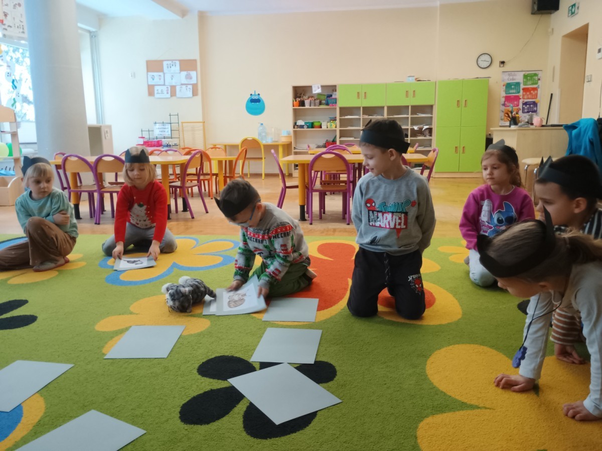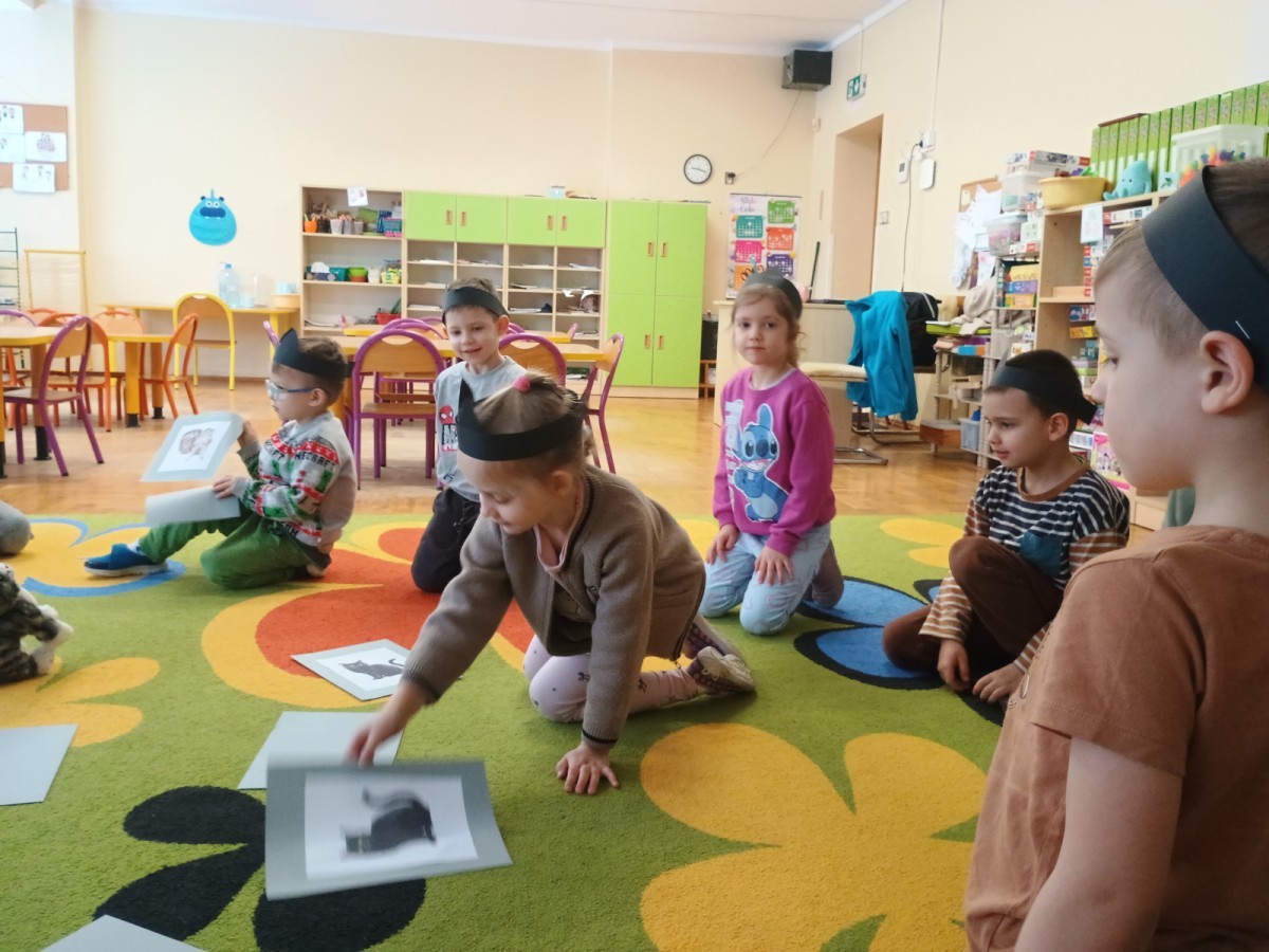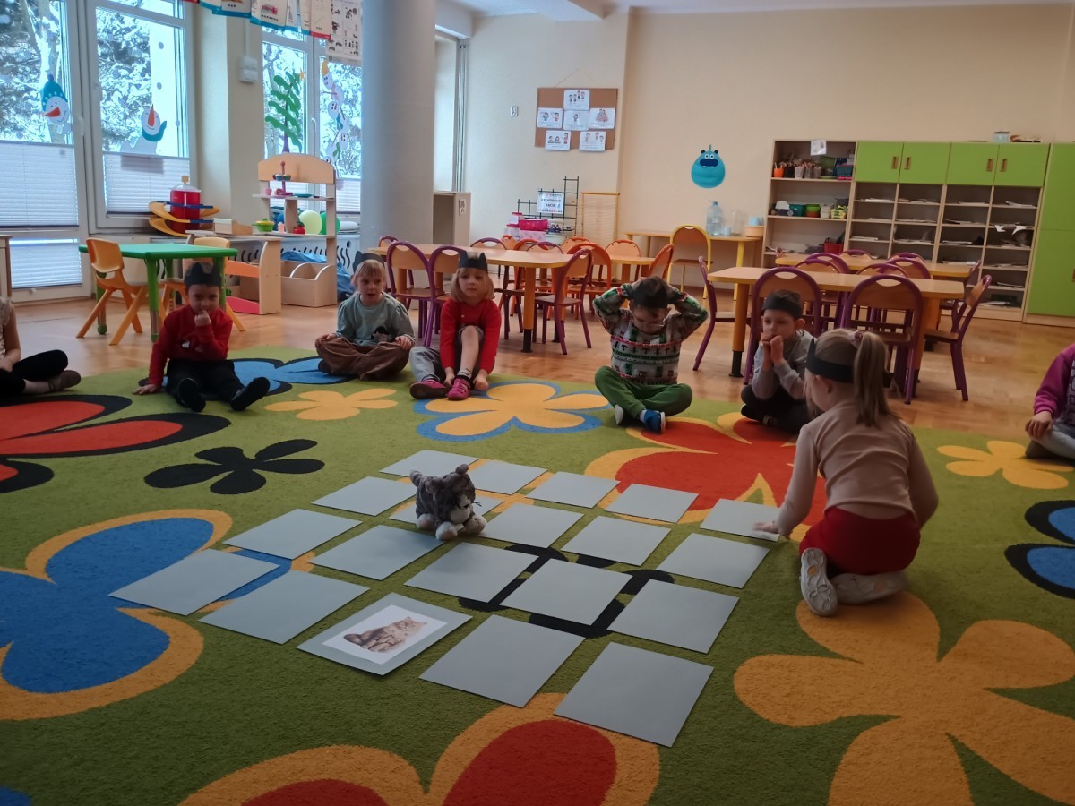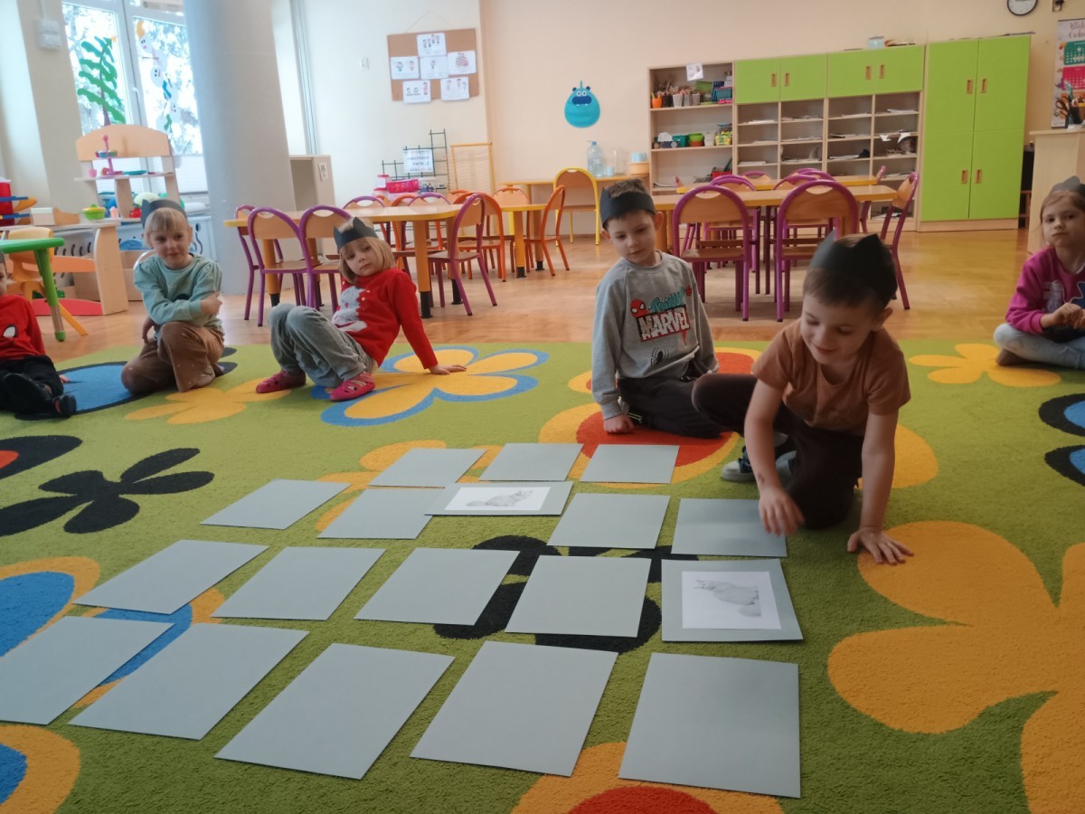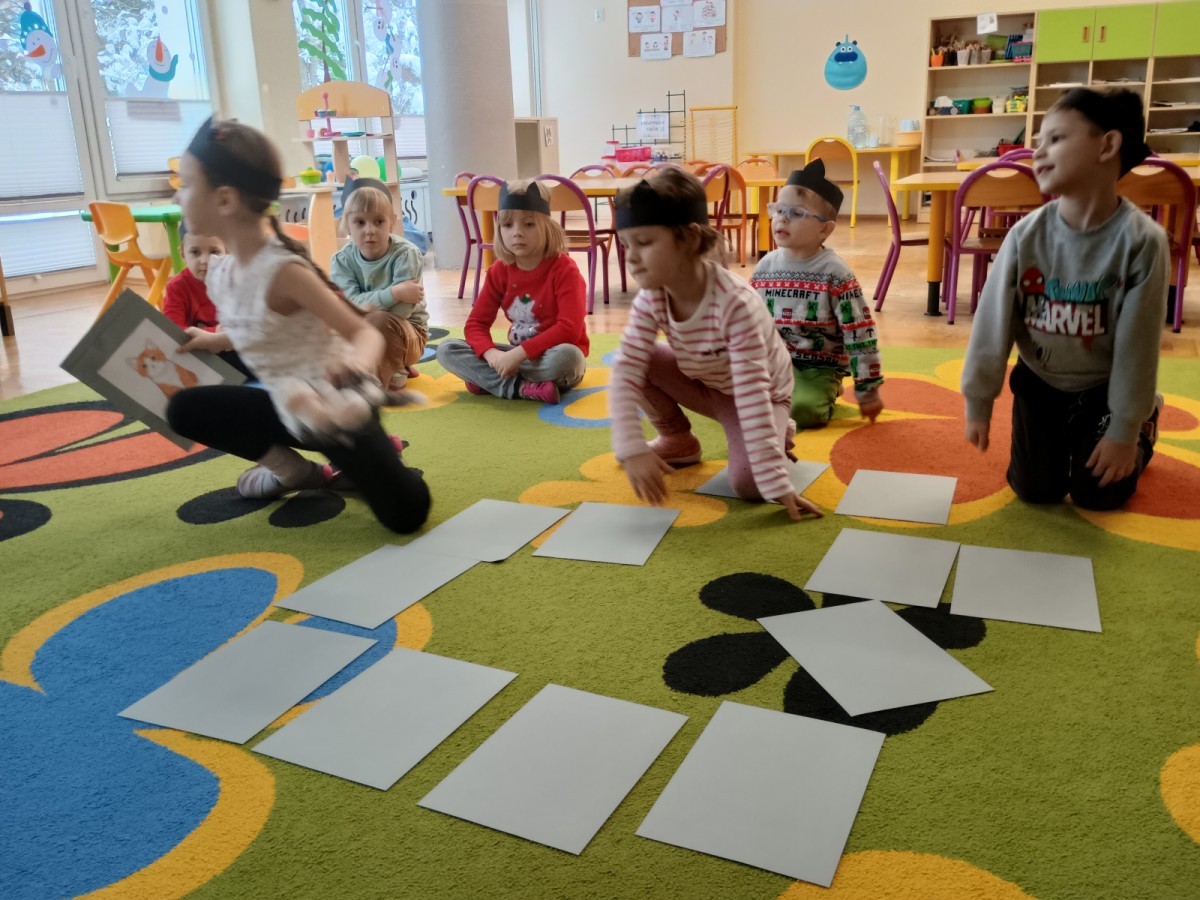 Zabawy rozpoczęliśmy od kociej gimnastyki, bawiliśmy się w grupowe memory i układaliśmy puzzle.