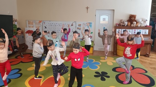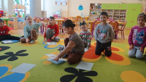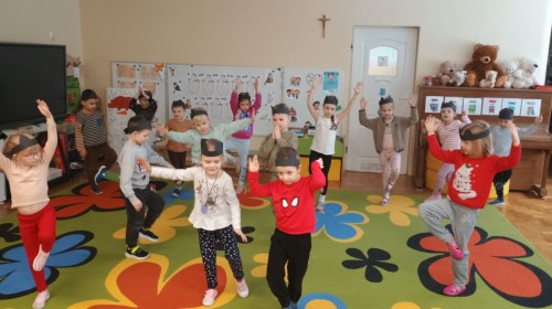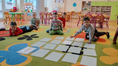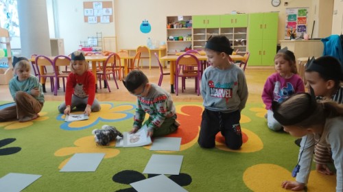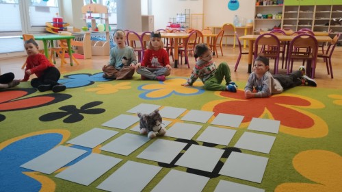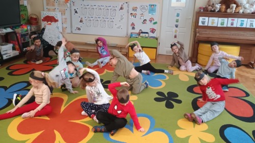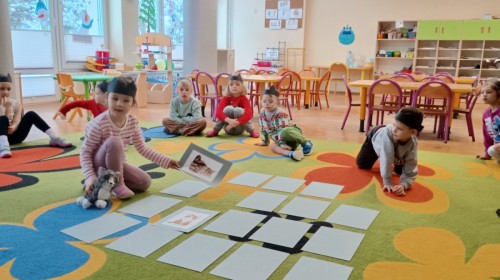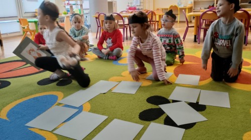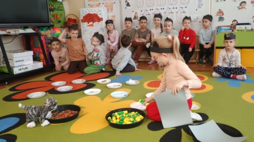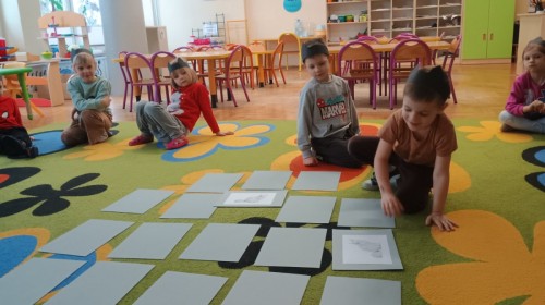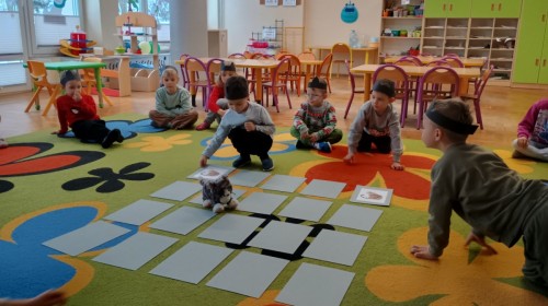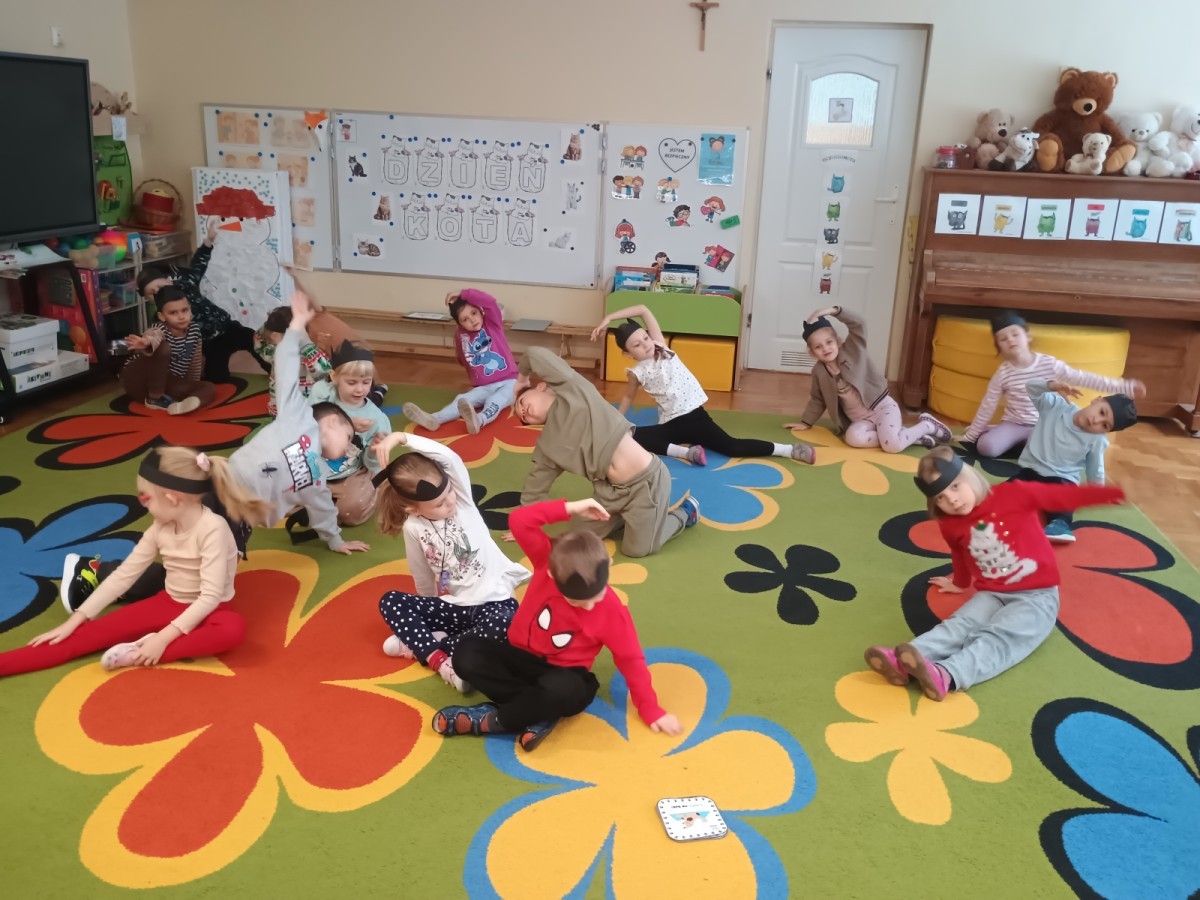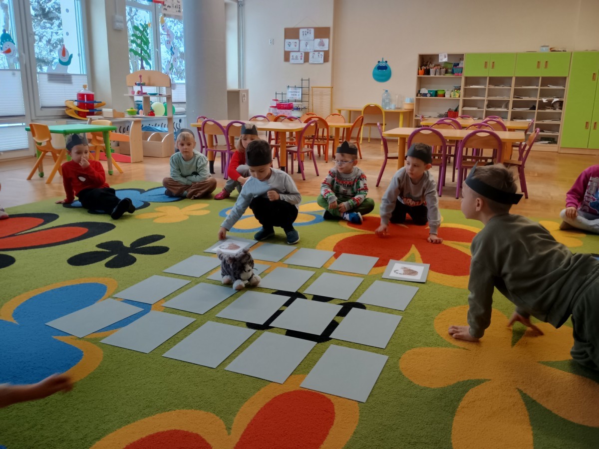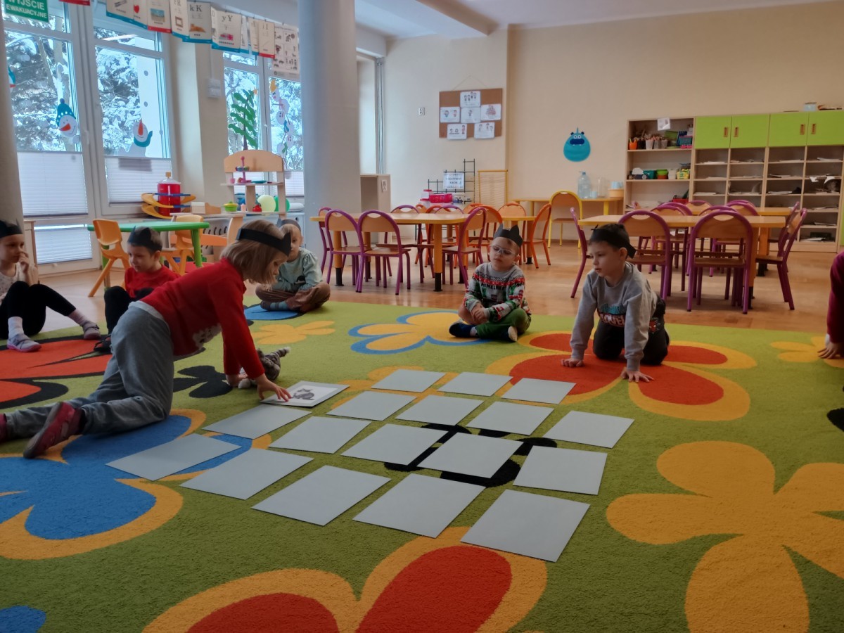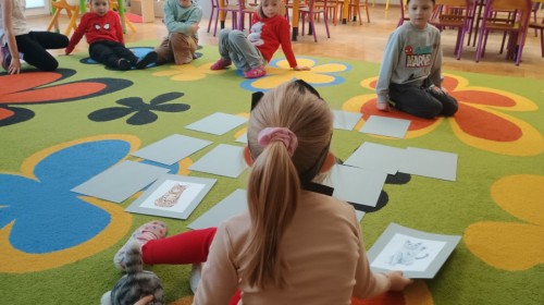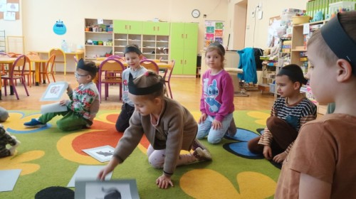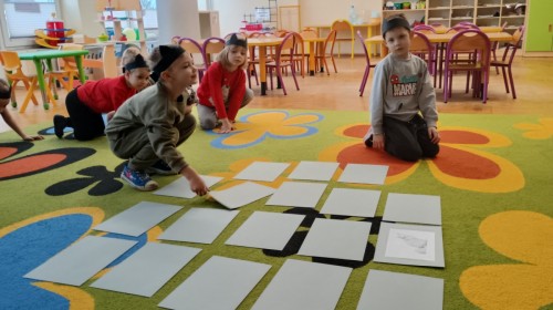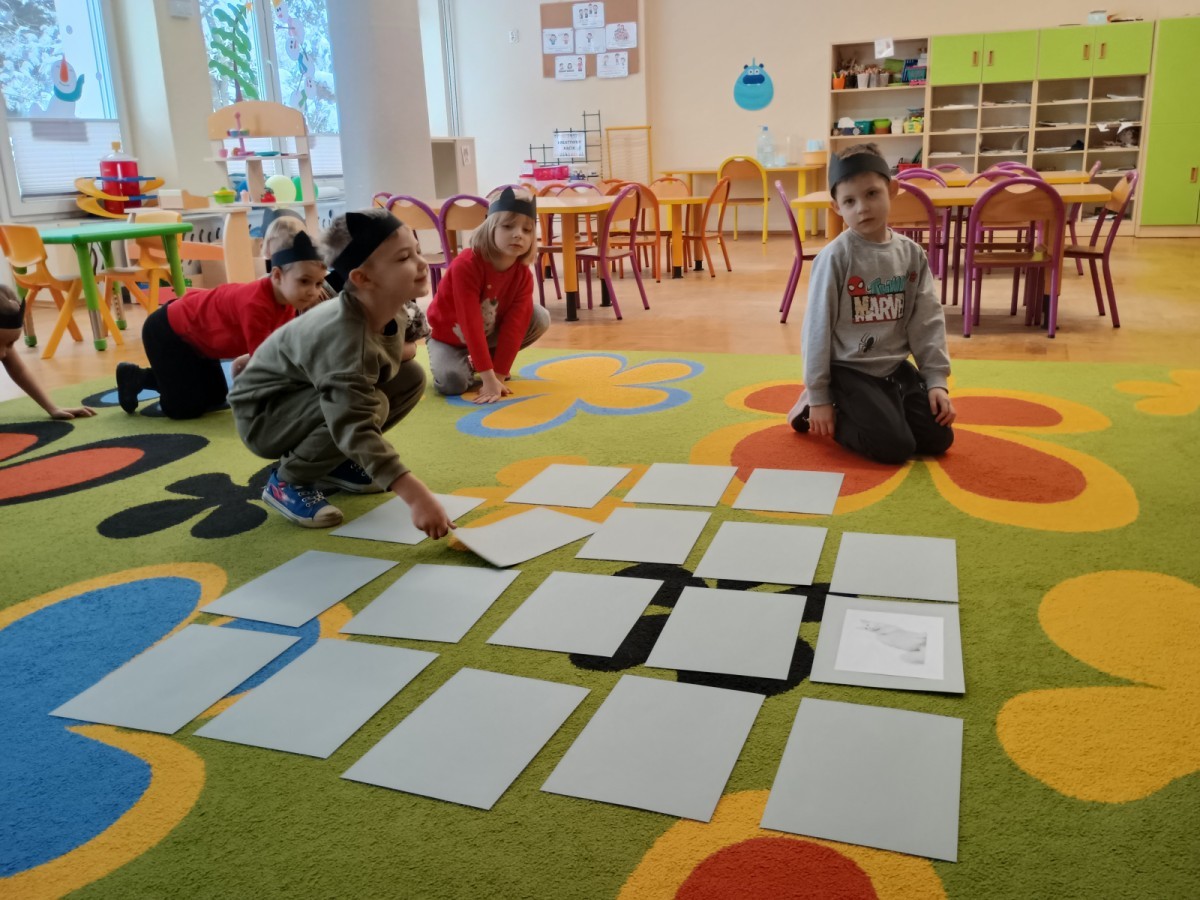 Zabawy rozpoczęliśmy od kociej gimnastyki, bawiliśmy się w grupowe memory i układaliśmy puzzle.