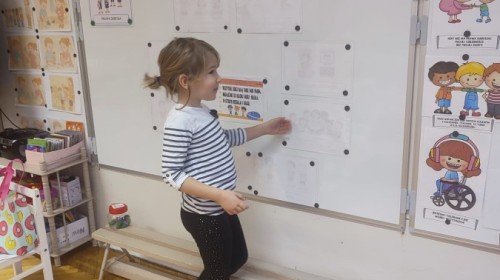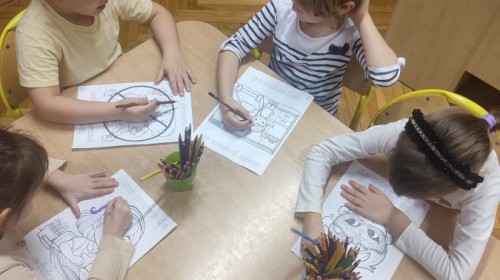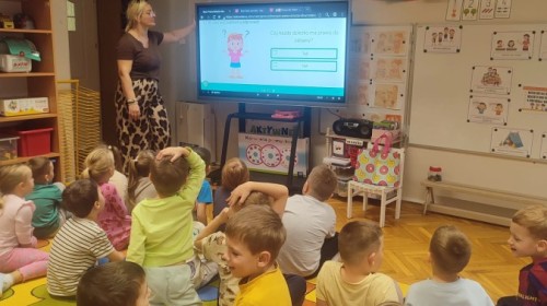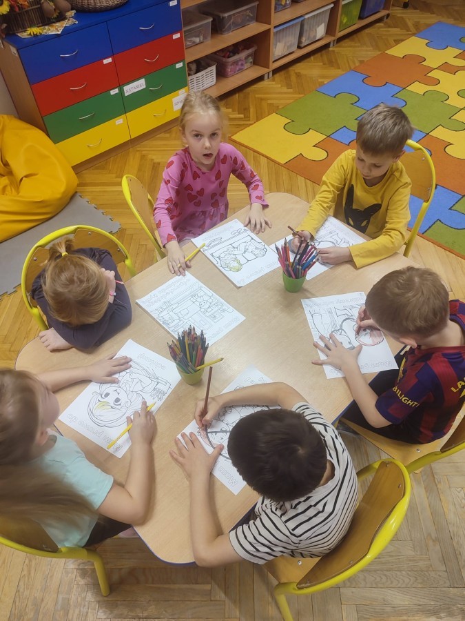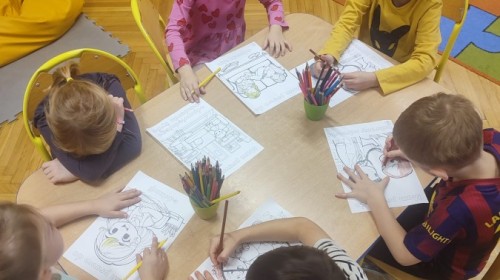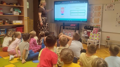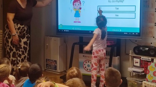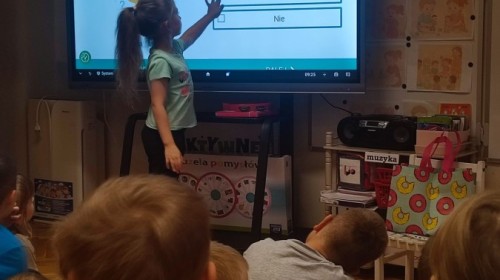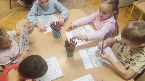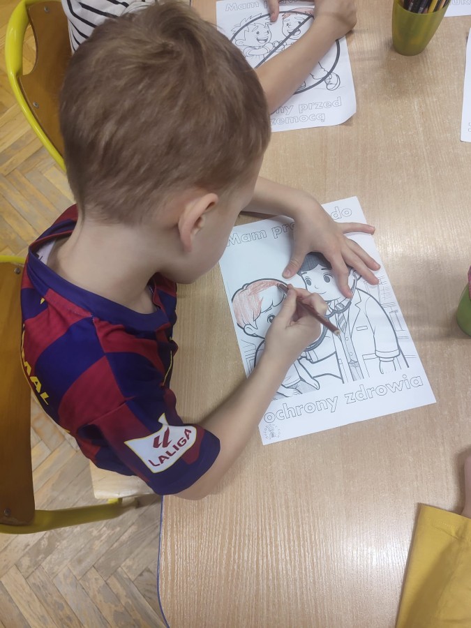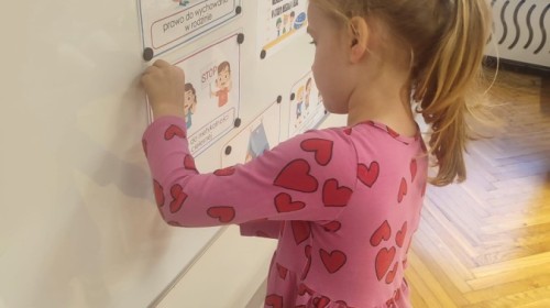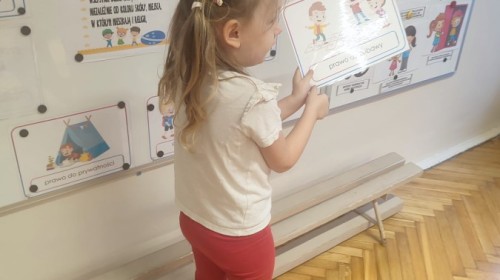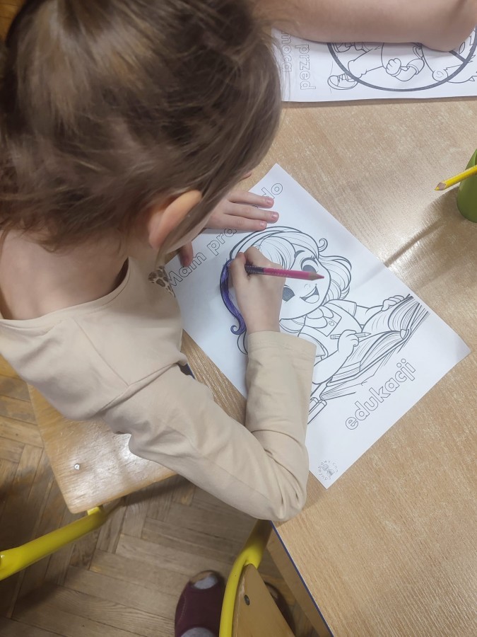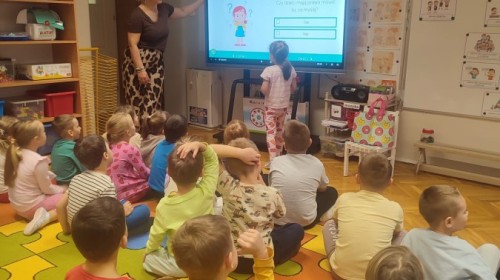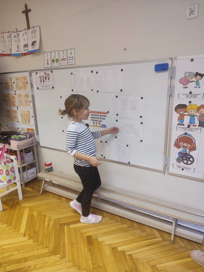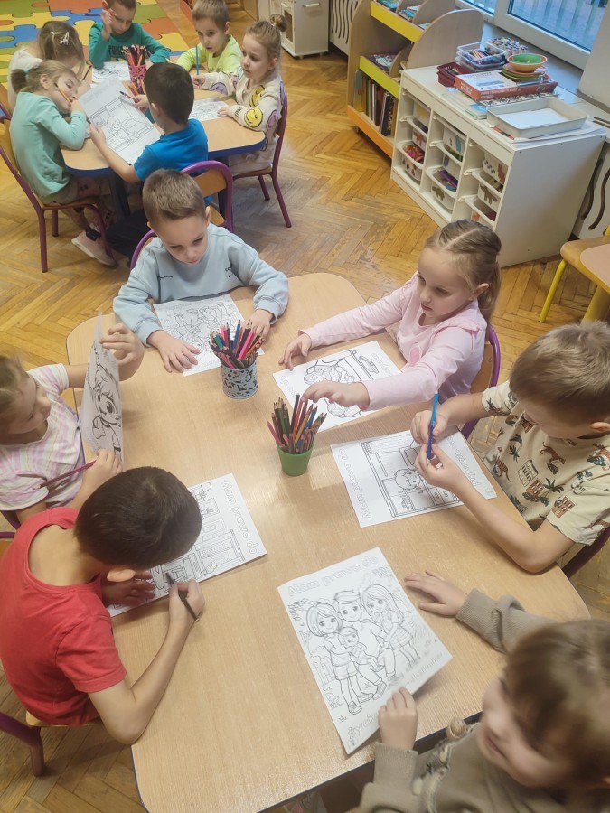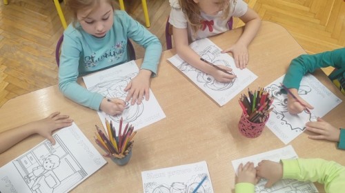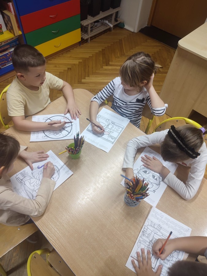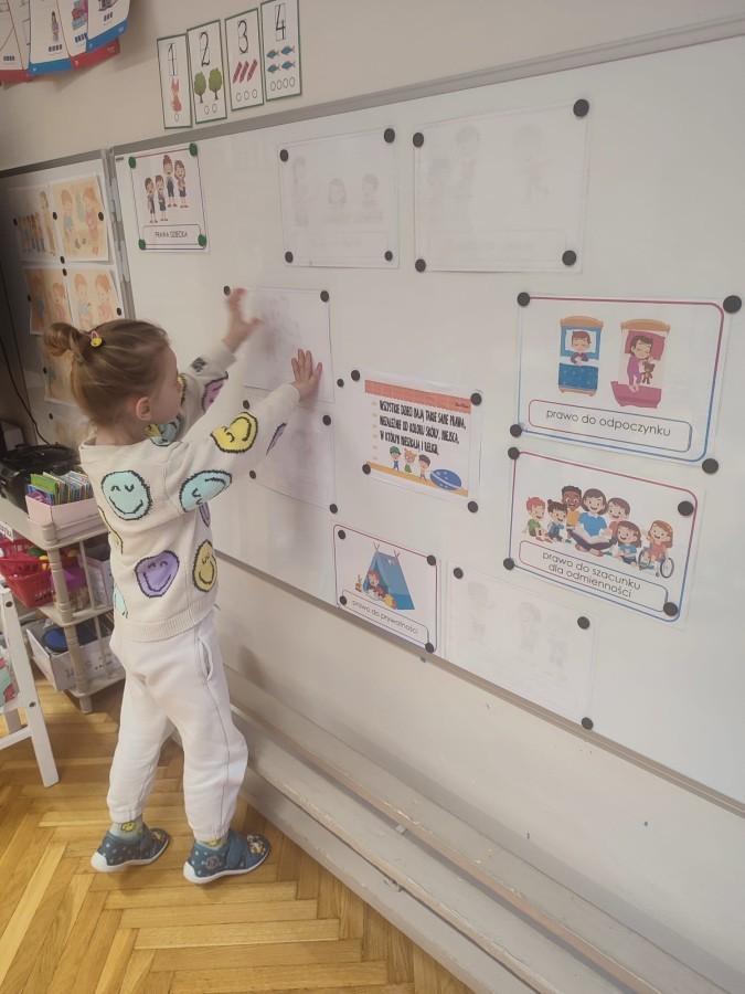 "O prawach dziecka" - wysłuchanie wiersza M. Brykczyńskiego i rozmowa na temat jego treści. "Quiz o prawach dziecka" -z wykorzystaniem tablicy multimedialnej . "Moje prawa" - kolorowanie wybranej przez dziecko kolorowanki dotyczącej praw dziecka przy piosence "Prawa dziecka".