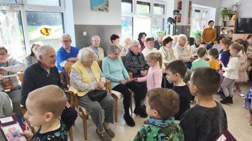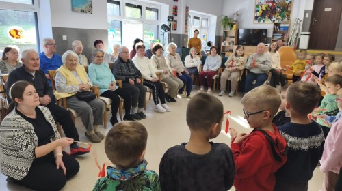 14 listopada z okazji Ogólnopolskiego Dnia Seniora wybraliśmy się z wizytą do "Podkowy". Podzieliliśmy się z Seniorami naszymi ulubionymi piosenkami, złożyliśmy życzenia i wręczyliśmy własnoręcznie wykonane laurki.