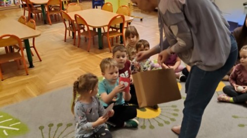 Biedronki obchodziły dzisiaj Dzień Życzliwości. Z tej okazji przygotowały podarunki,dla grupy Biedronek z innego bielskiego przedszkola. My również zostaliśmy obdarowani prezencikami, które sprawiły nam mnóstwo radości.