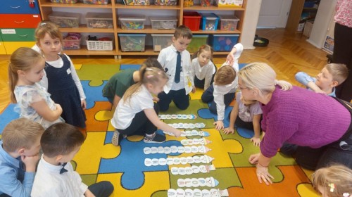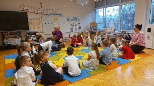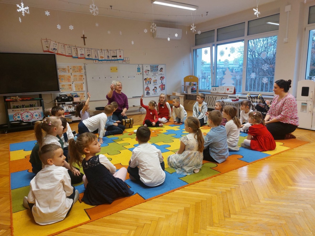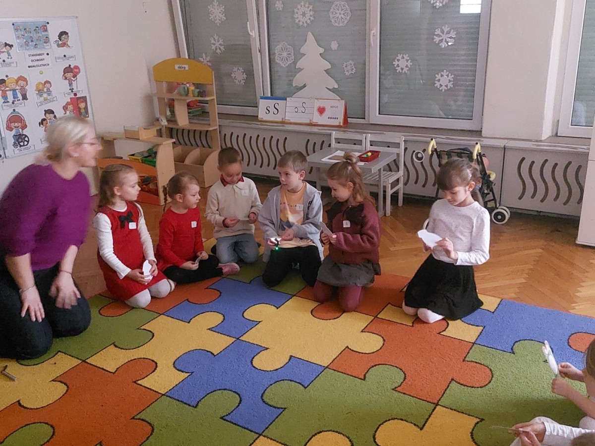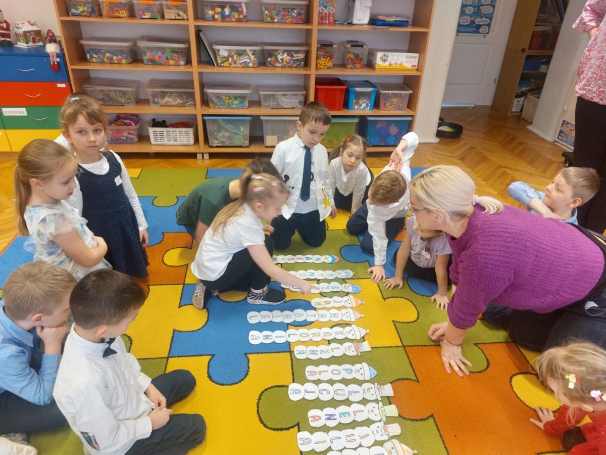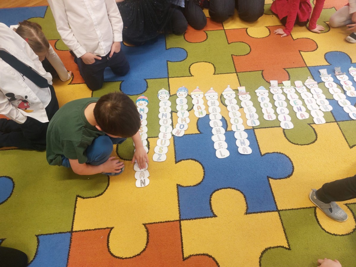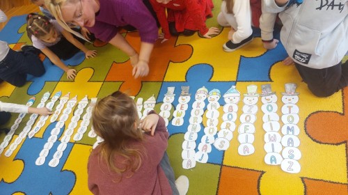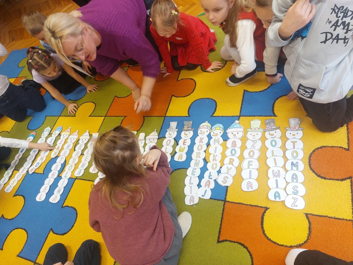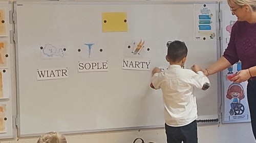 "Zimowy kuferek"- zabawa wprowadzająca w tematykę zajęć z językiem angielskim. "Śniegowe słowa"- zabawa rozwijająca współpracę i percepcję wzrokową, "Zimowa przygoda"- tor ruchowy, "Niespodzianka"- zabawa pozwalająca rozwijać język i koncentrację, "Mój bałwanek" - zajęcia plastyczno-techniczne, "Śnieżynkowy wybór"- zabawa pozwalająca wyrazić swoją opinię i emocje w formie aktywnej...