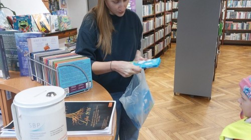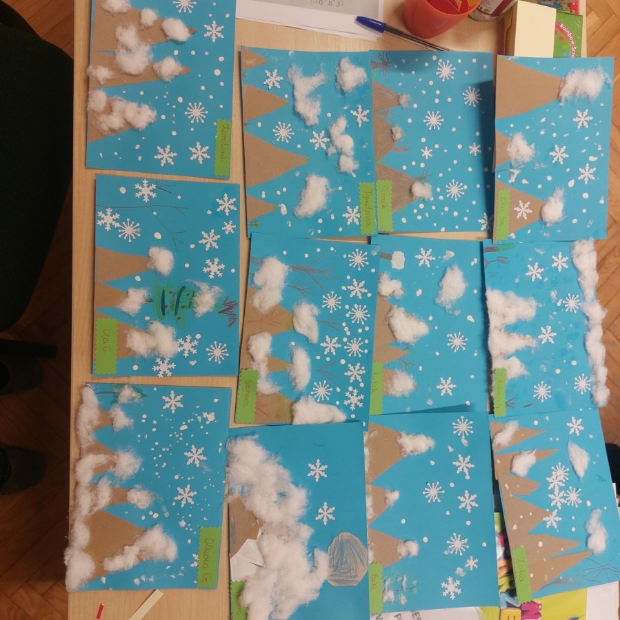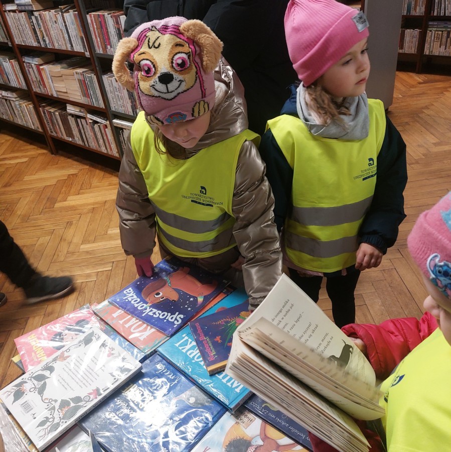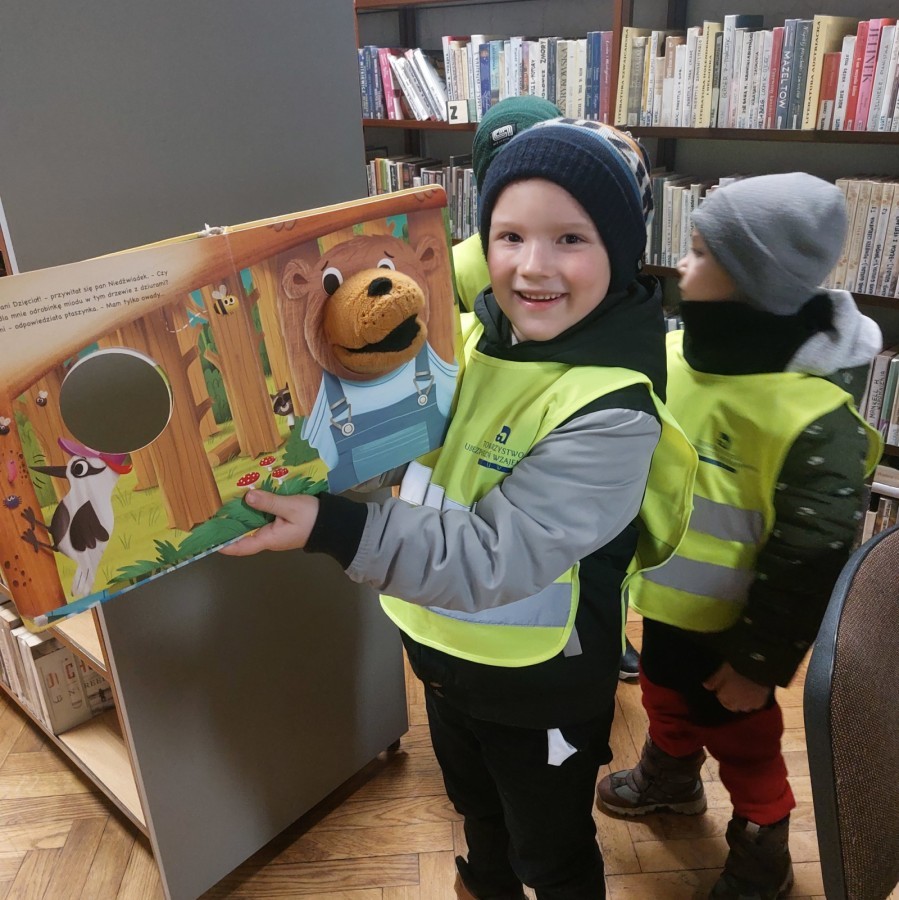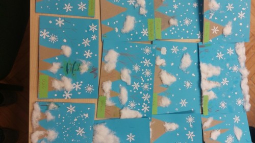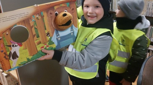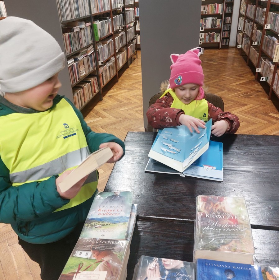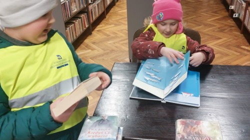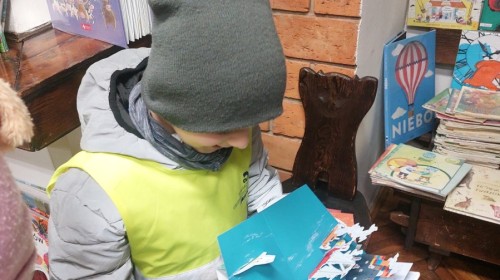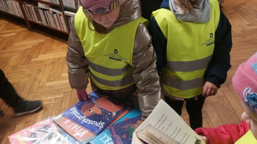 Kasztanki podczas spaceru wybrały się do pobliskiej biblioteki. W ramach realizacji programu "Rok z Franklinem" dzieci wykonały prace o tematyce zimowej na tamtejszą galerię. Kasztanki z przyjemnością przeglądały książki dla dzieci.