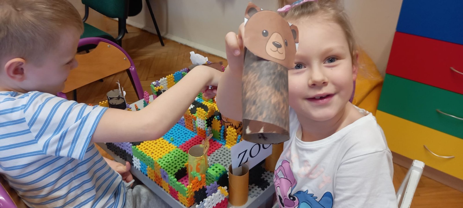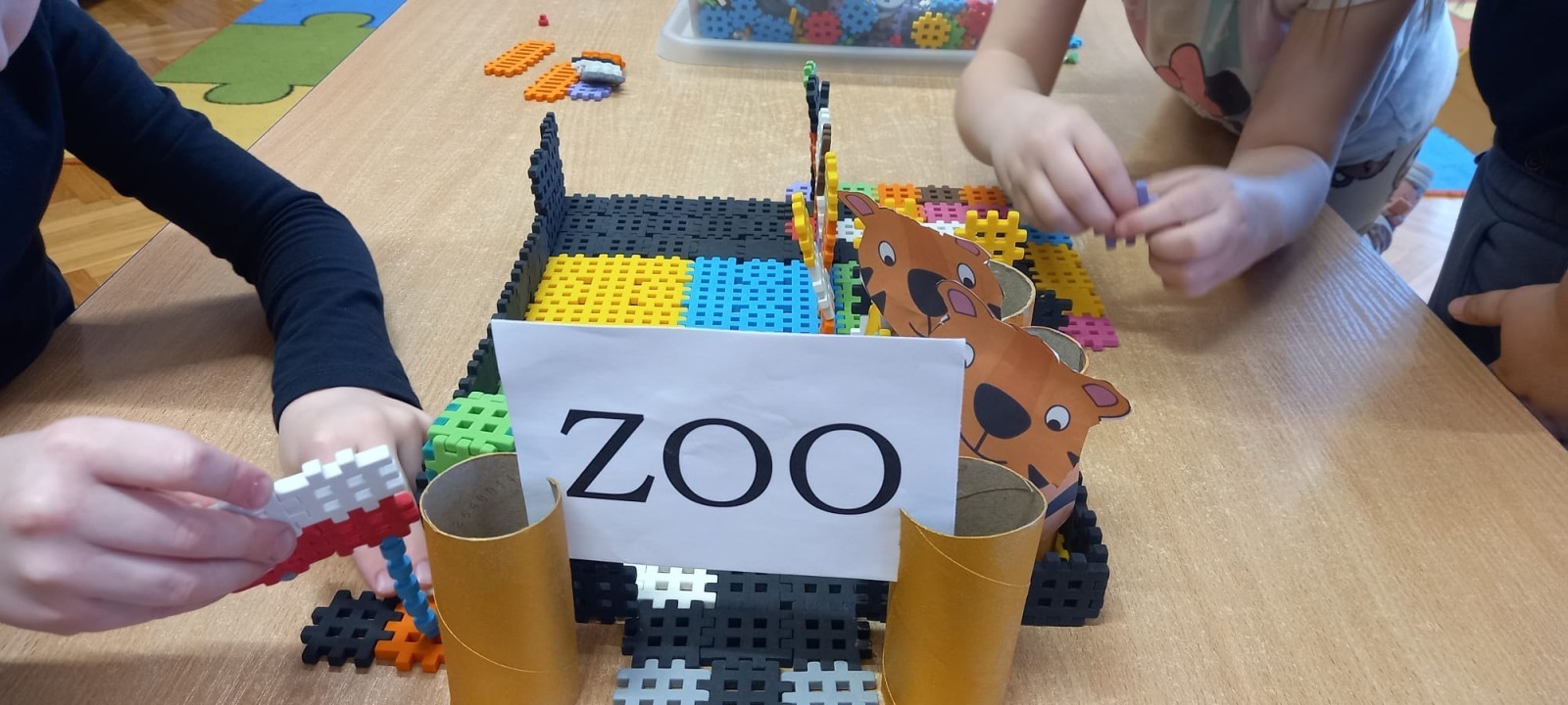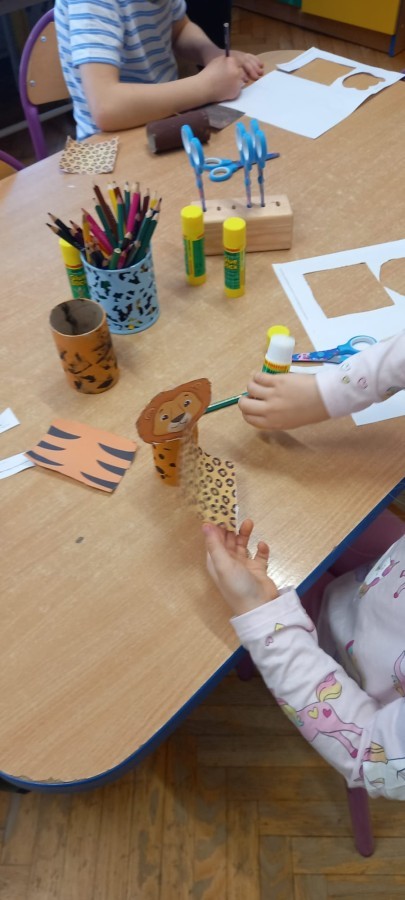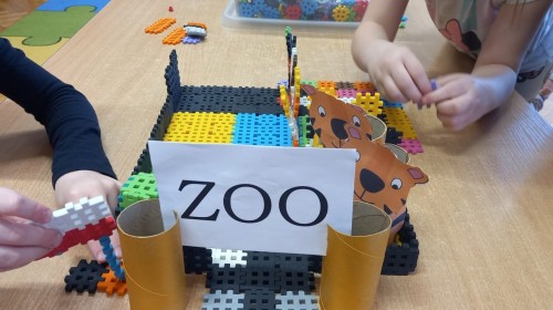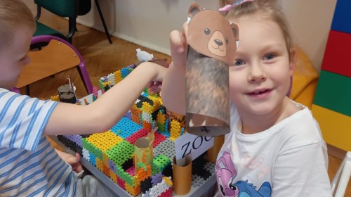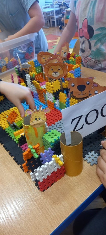 "Zwierzęta mięsożerne i roślinożerne" - zabawa na dywanie. "ZOO" - zajęcia techniczne z wykorzystaniem rolek po papierze toaletowym. "Budujemy ZOO" - zabawy konstrukcyjne, wykonanie makiety ZOO. "Ile zwierząt?" - gry matematyczne. 🐒🦁🐯🦓🦬🐘🐻🐊🦜