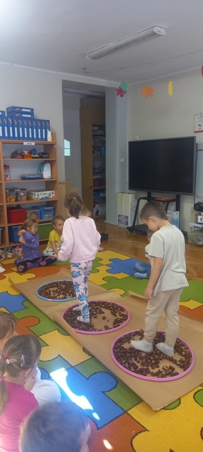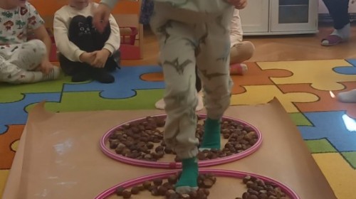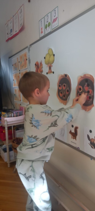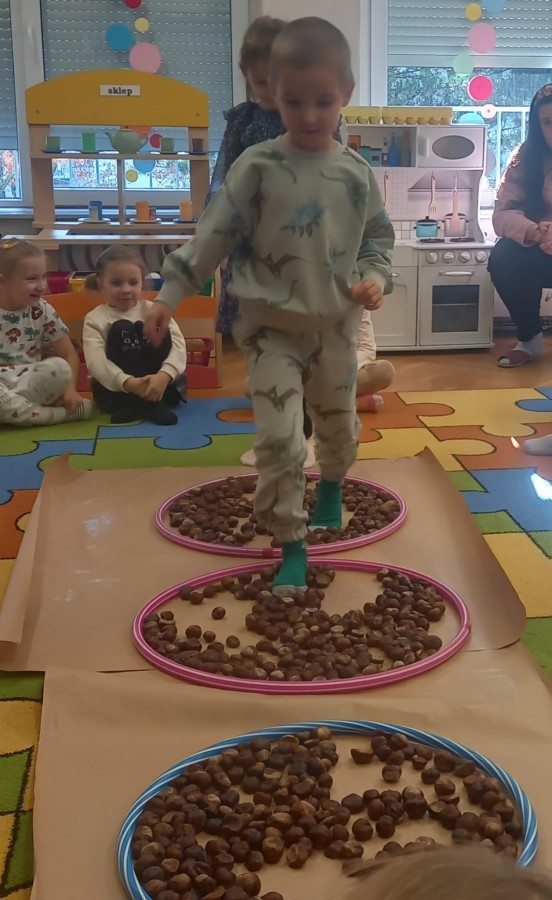 Kasztankowy tydzień o zwierzętach leśnych zakończyliśmy zabawą w ogrodzie🍁🍂🍃, matematyką z wiewiórką🐿 oraz zajęciami sensorycznymi👣🌰👣🌰👣🌰