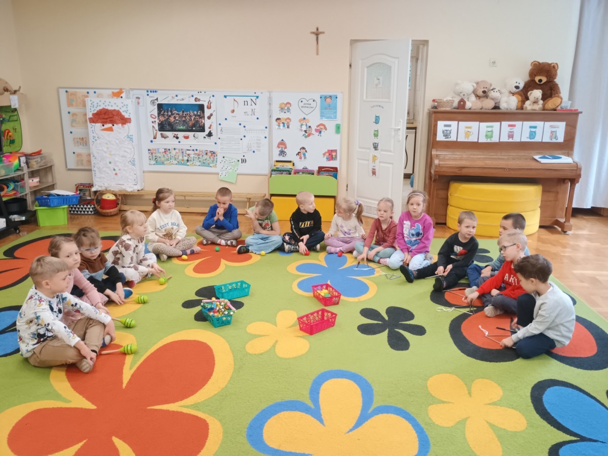 Zapraszamy do obejrzenia relacji z naszych zajęć muzycznych. Kropelki świetnie poradziły sobie z zagadkami słownymi, stworzyły "grupową orkiestrę" i piękne prace plastyczne. Grając na instrumentach przypomnieliśmy sobie, że w muzyce każdy dźwięk ma swoje wyjątkowe miejsce.