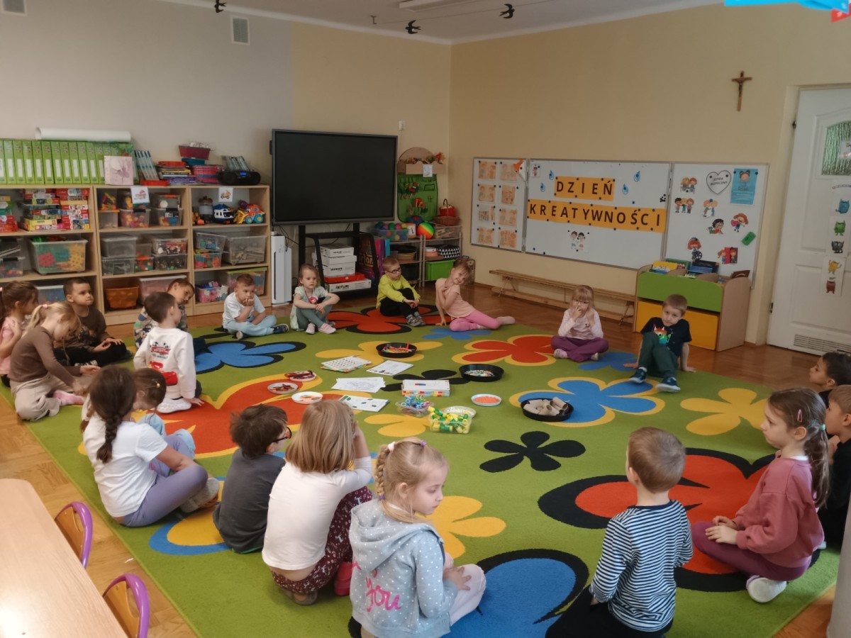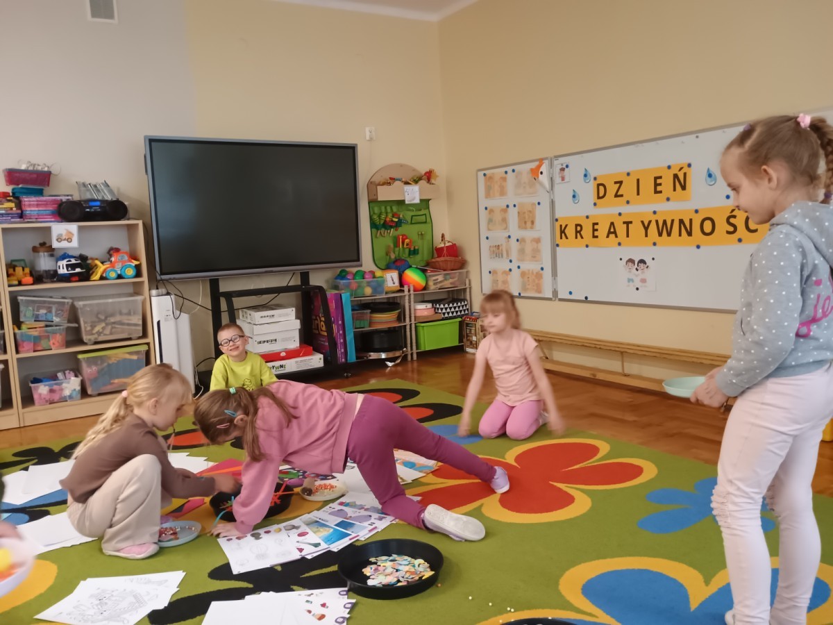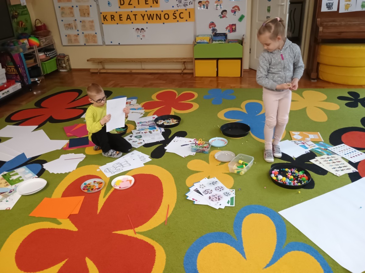 21 kwietnia to międzynarodowy Dzień Kreatywności, postanowiliśmy świętować go realizując kolejny punkt z naszej innowacji pt: "Małe kroki do wielkiego spokoju". Okazało się, że kreatywne zabawy mogą być wspaniałym sposobem na wyciszenie się i uspokojenie emocji.
