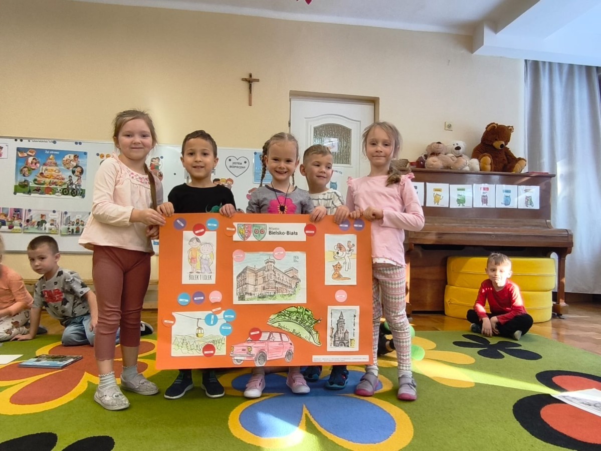 W piątek w ramach realizacji programu ,,Odkrywamy świat z uśmiechem'' Kropelki poznały ciekawostki o naszym mieście Bielsku -Białej, wspólnie wykonały plakat, obejrzały film promujący miasto oraz w grupach oglądały albumy i pocztówki przedstawiające zabytki miasta. Zapraszamy do galerii.