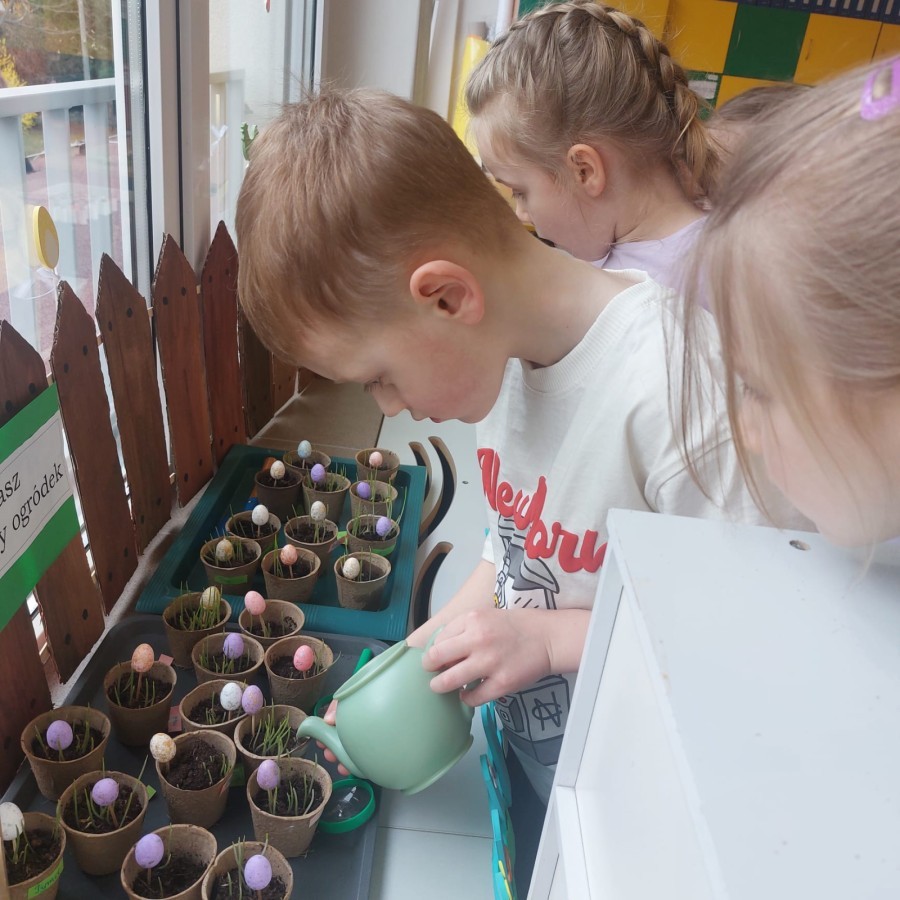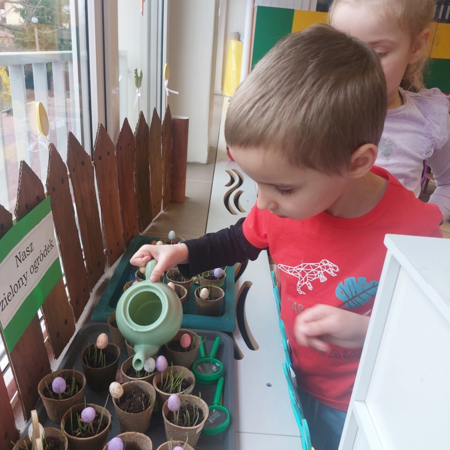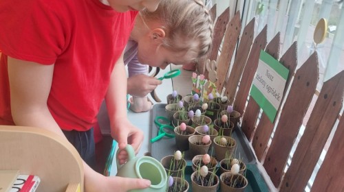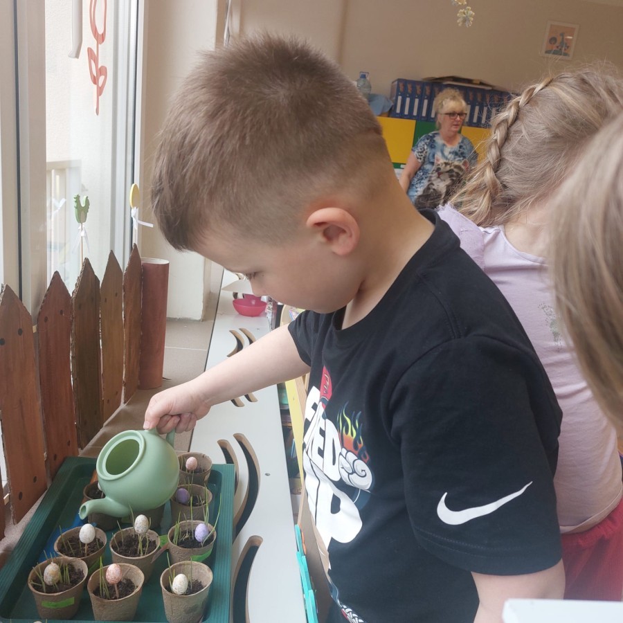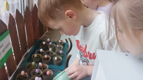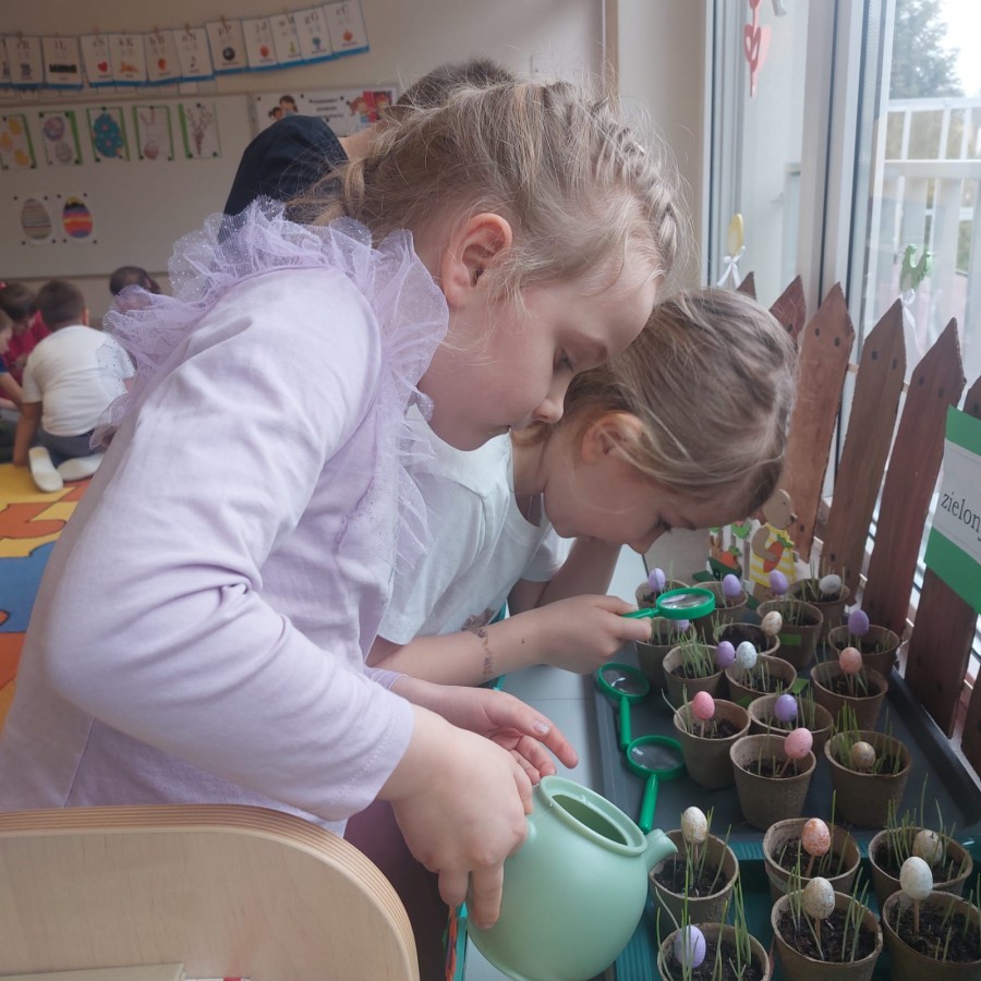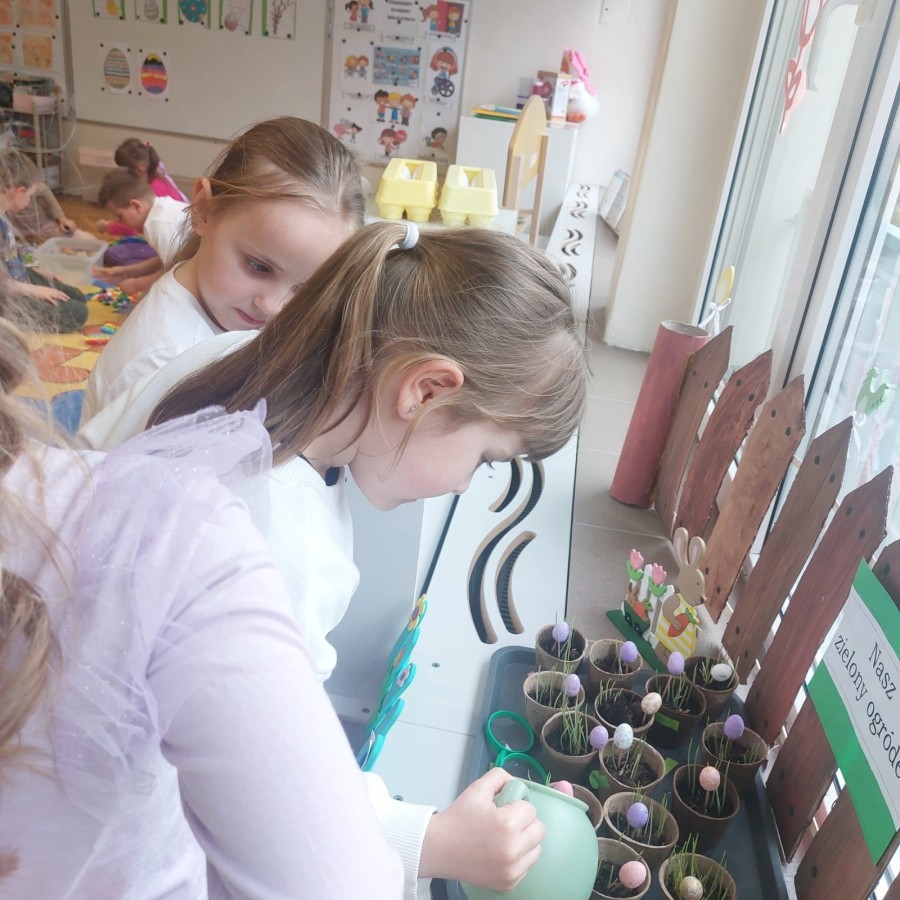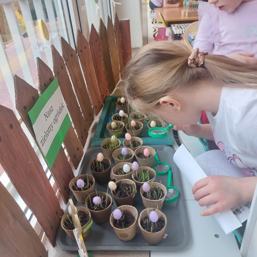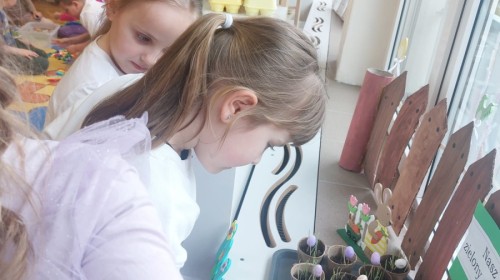 Kasztanki codziennie doglądały posiany owies. Zabrały go do domu, będzie ozdobą wielkanocnego stołu.