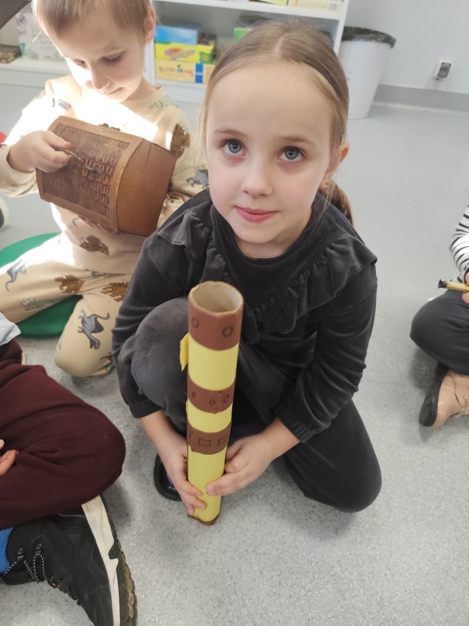W czasie przygody dzieci wykorzystywały swoje rekwizyty do rozwiązania różnorodnych zadań, dzięki którym poznawali lepiej gmach biblioteki📚