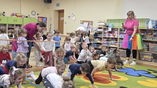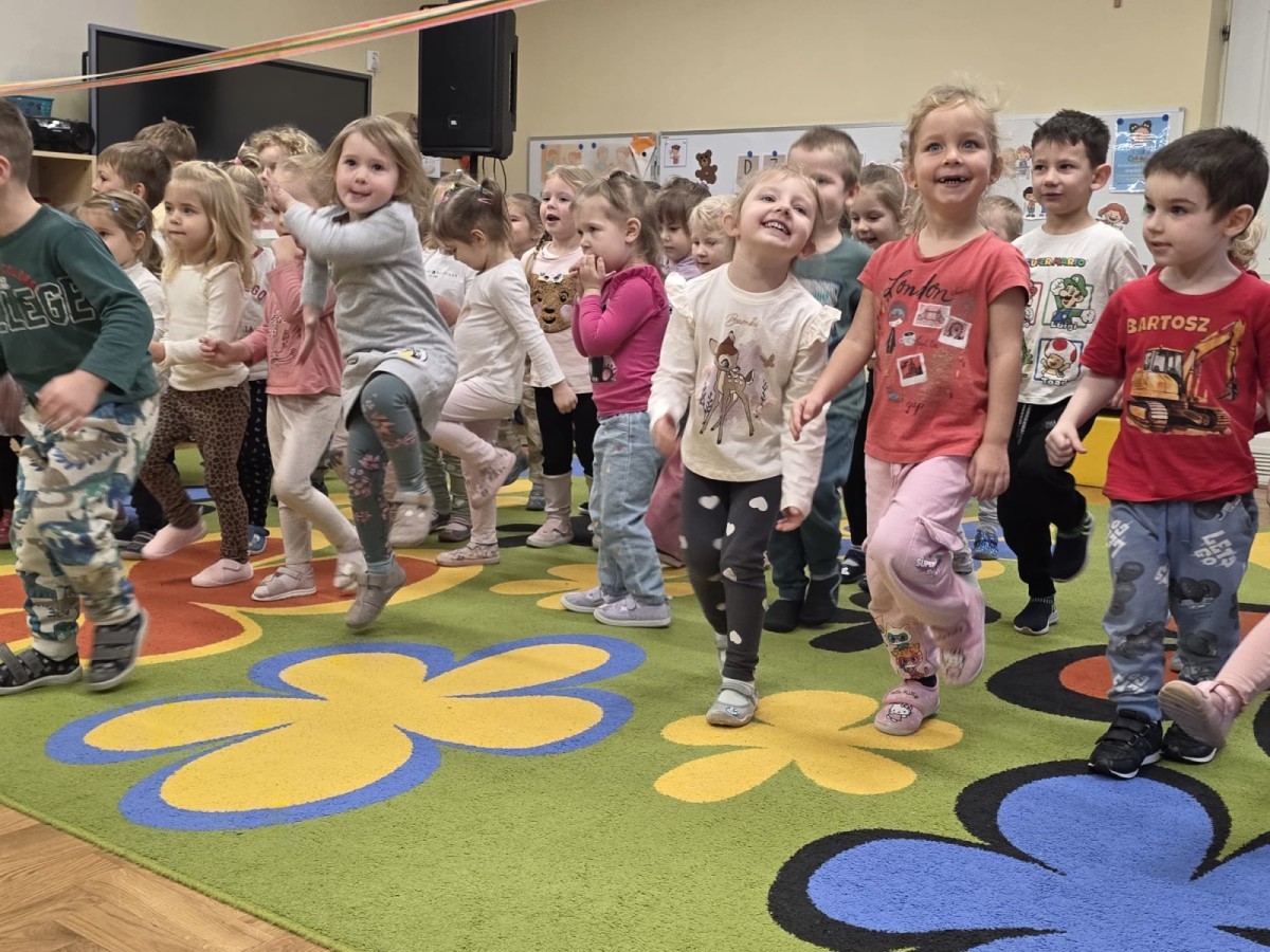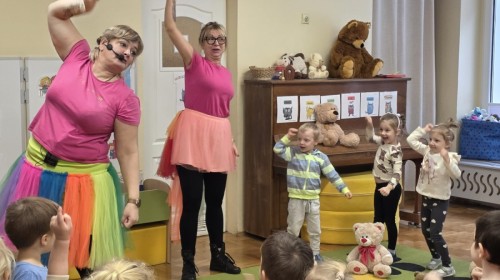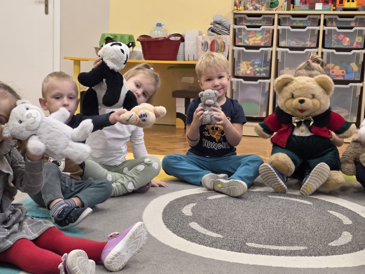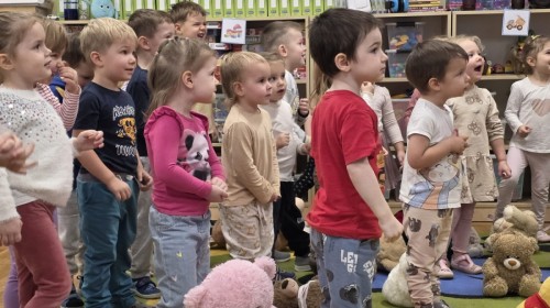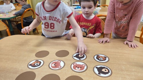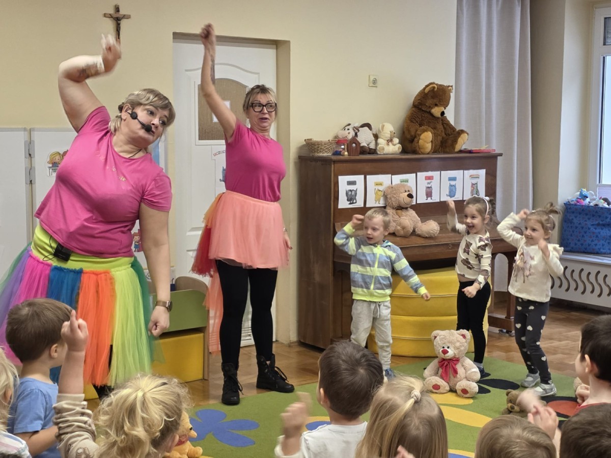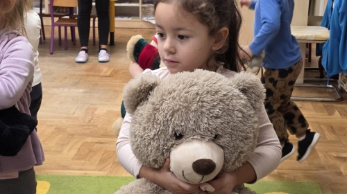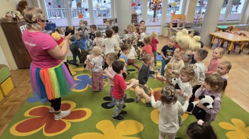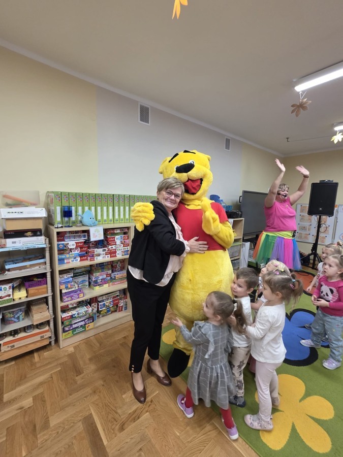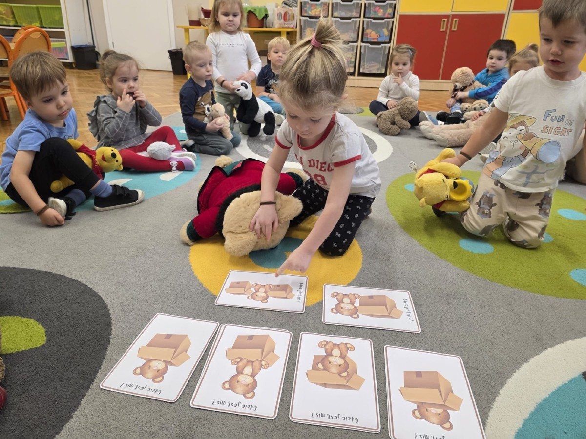 Dzieci z grupy Misie zaprezentowały swoje Misie, odgadywały i określały "Gdzie jest miś", grały w "Misiowe memorki". Potem wspólnie z grupą Biedronek bawiły się z Animatorkami, spotkały Kubusia Puchatka bawiły się, przytulały do Misia i zrobiliśmy wspólne zdjęcie.