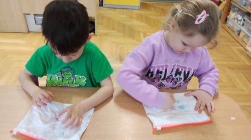 Biedronki przypomniały sobie, jak należy dbać o siebie,by chronić się przed chorobami. Zrobiły również sensoryczne woreczki, w których ukryły się kolorowe bakterie.