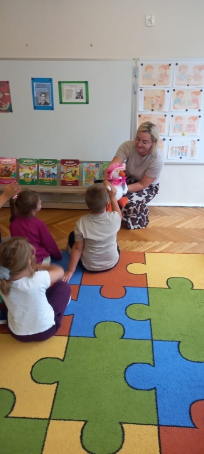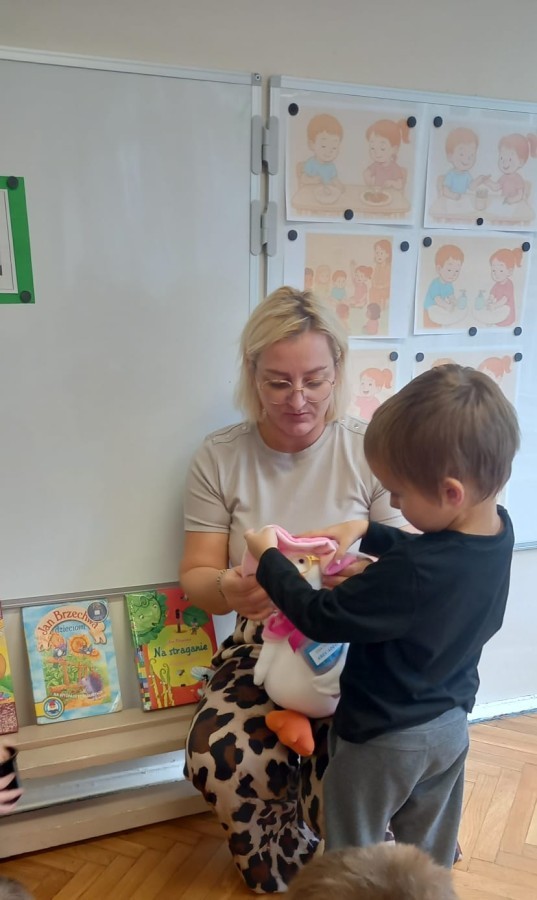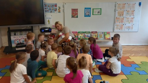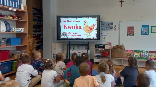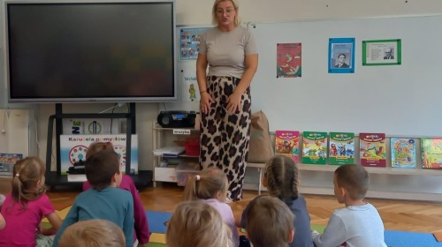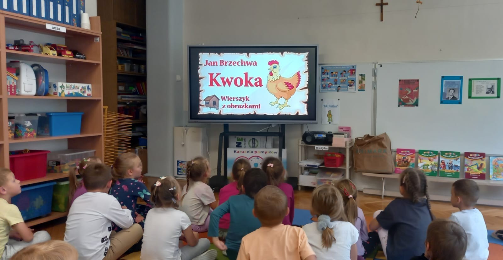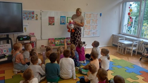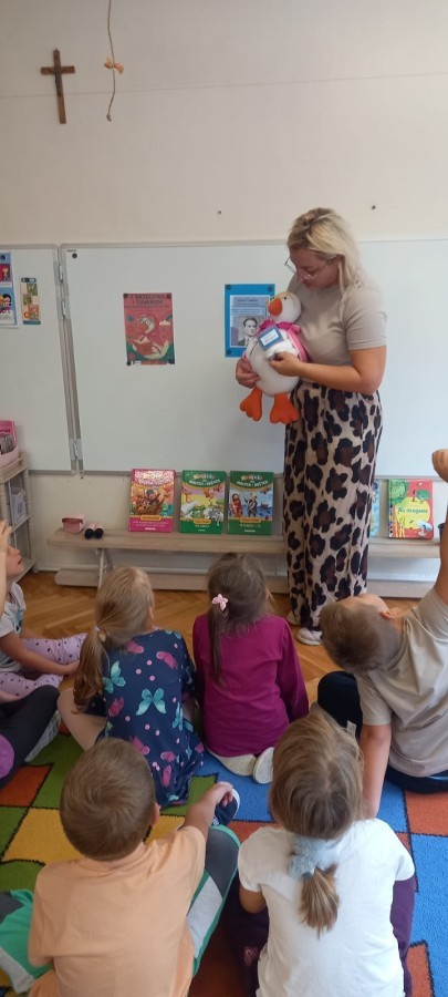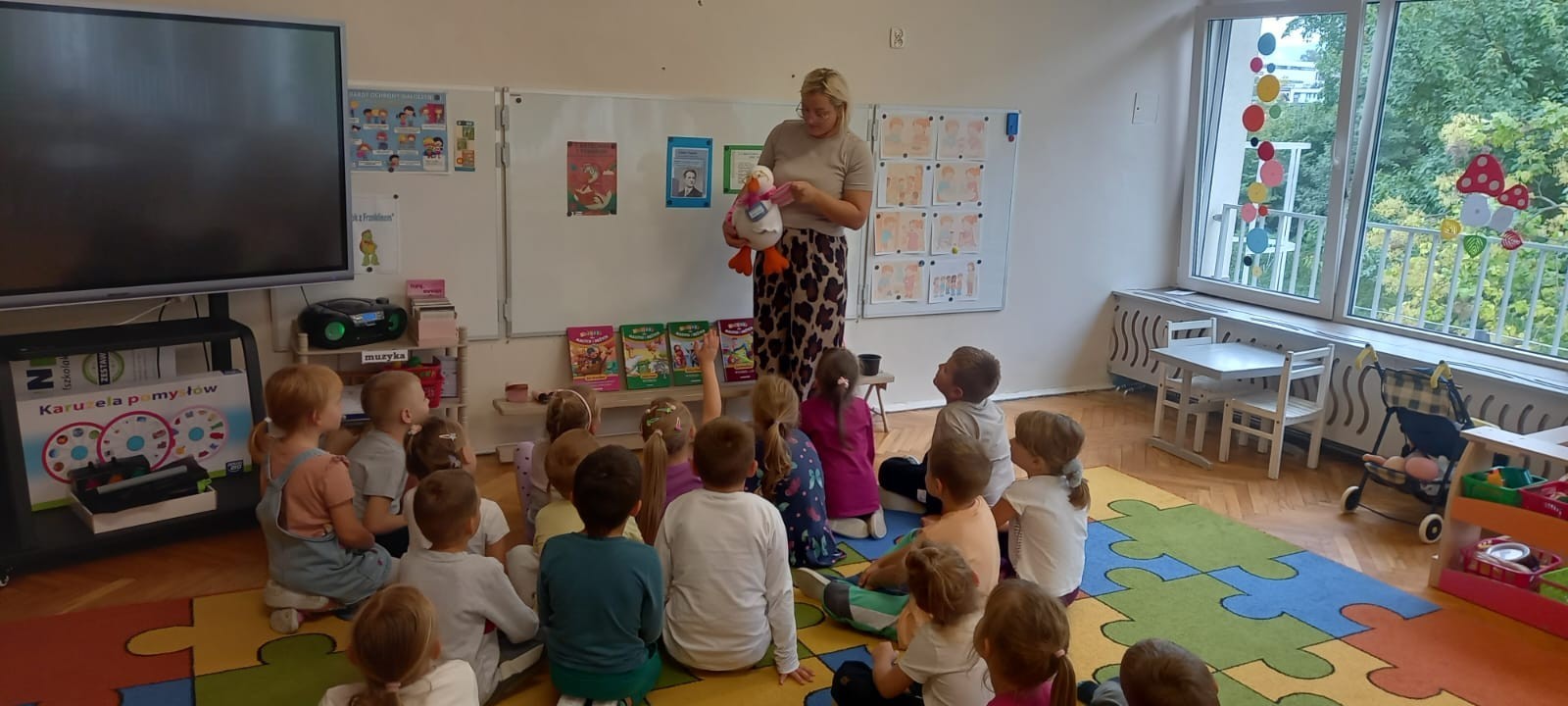 Kasztanki zapoznały się z Kaczką Dziwaczką, która będzie nam towarzyszyć w ciągu całego roku. Dowiedzielismy się kim jest poeta, wysłuchaliśmy wiersza "Kwoka" o "dobrym wychowaniu, rozmawialiśmy na temat dobrych manier.